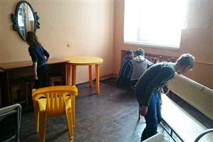 "Дворец творчества" уже вторую неделю подряд продолжает наводить порядок в здании и вокруг него. Педагоги и ребята с удовольствием "наводят красоту" в любимом Дворце: убирают старую листву на территории, моют окна, приводят в порядок кабинеты и другие помещения.