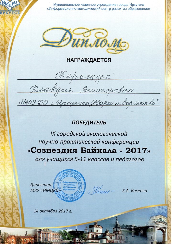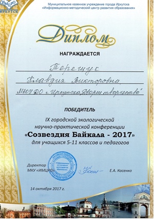 В субботу, 14 октября, c целью выявления и поддержки одаренных детей, развития творчества школьников и педагогов прошла IX городская научно-практическая конференция «Созвездия Байкала» для педагогов и учащихся 5-11 классов. Конференция проводилась по направлениям, охватывающим естественные науки: биология, химия, физика, география, экология, байкаловедение, история.
