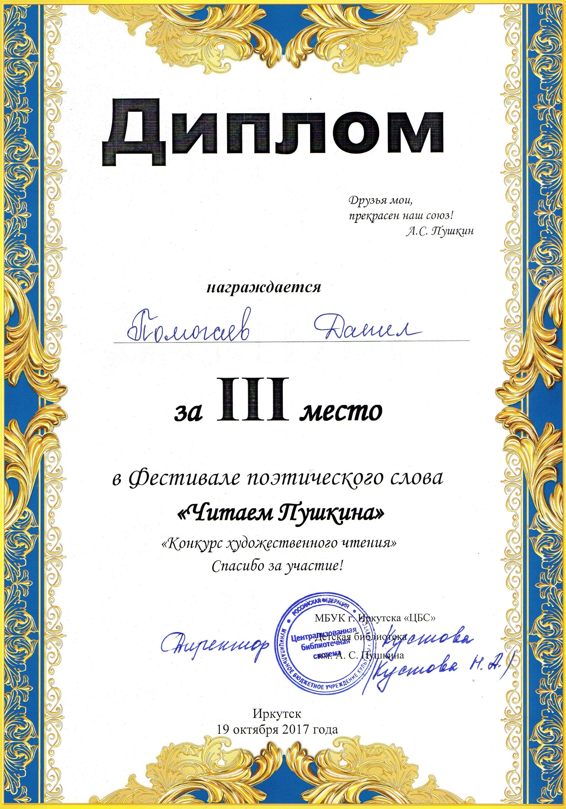 В Иркутске прошел XII фестиваль поэтического слова «Читаем Пушкина» среди детей и юношества, посвященный роману в стихах «Евгений Онегин».
