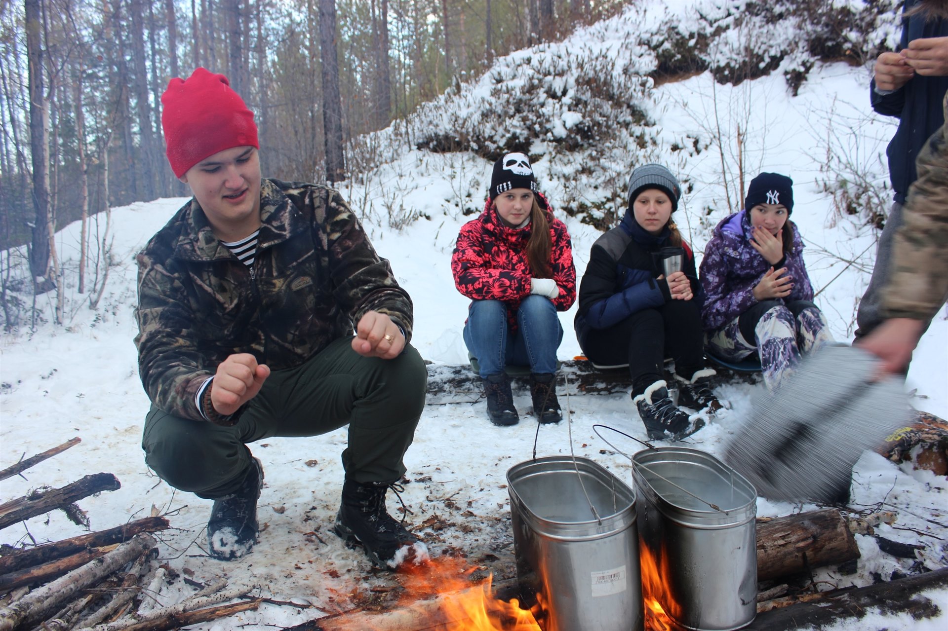 - В первый день похода участники похода посетили: "Карьер" и скальник "Старая Крепость", обед сделали возле ключа "Зырянский". К сожалению, на скальнике: "Зеркала" и "Медвежата" мы уже не успели зайти, так как в зимнее время темнеет рано, поэтому мы решили сразу идти в зимовьё "Петровича", и то нам пришлось последние километры идти с фонариками, так как солнце зашло за горизонт. В зимовье "У Петровича" нас встретил сторож Сергей, теперь он там следит за порядком.