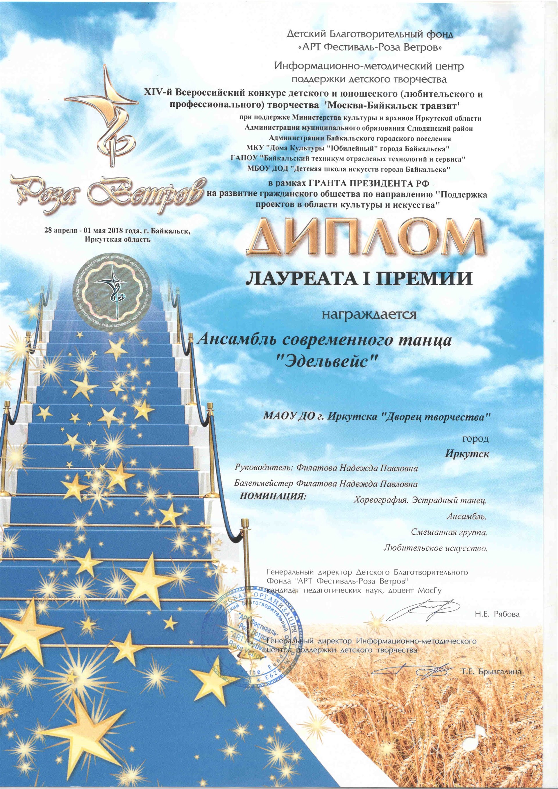 XIV Всероссийский конкурс детского и юношеского творчества (профессионального и любительского) «Москва – Байкальск транзит» в рамках АРТ-фестиваля «Роза ветров 2018» прошел в Байкальске с 28 апреля по 1 мая 2018 года. Организатор – детский благотворительный фонд «АРТ Фестиваль – Роза ветров». Проводится конкурс в рамках национального проекта «Образование» по направлению «Государственная поддержка талантливой молодежи» и федеральной целевой программы «Культура России».