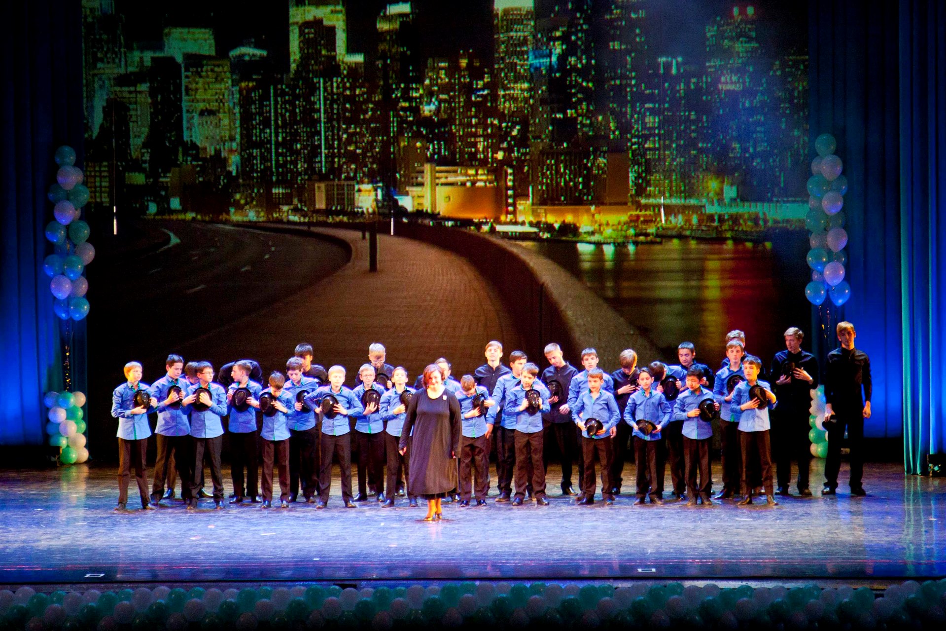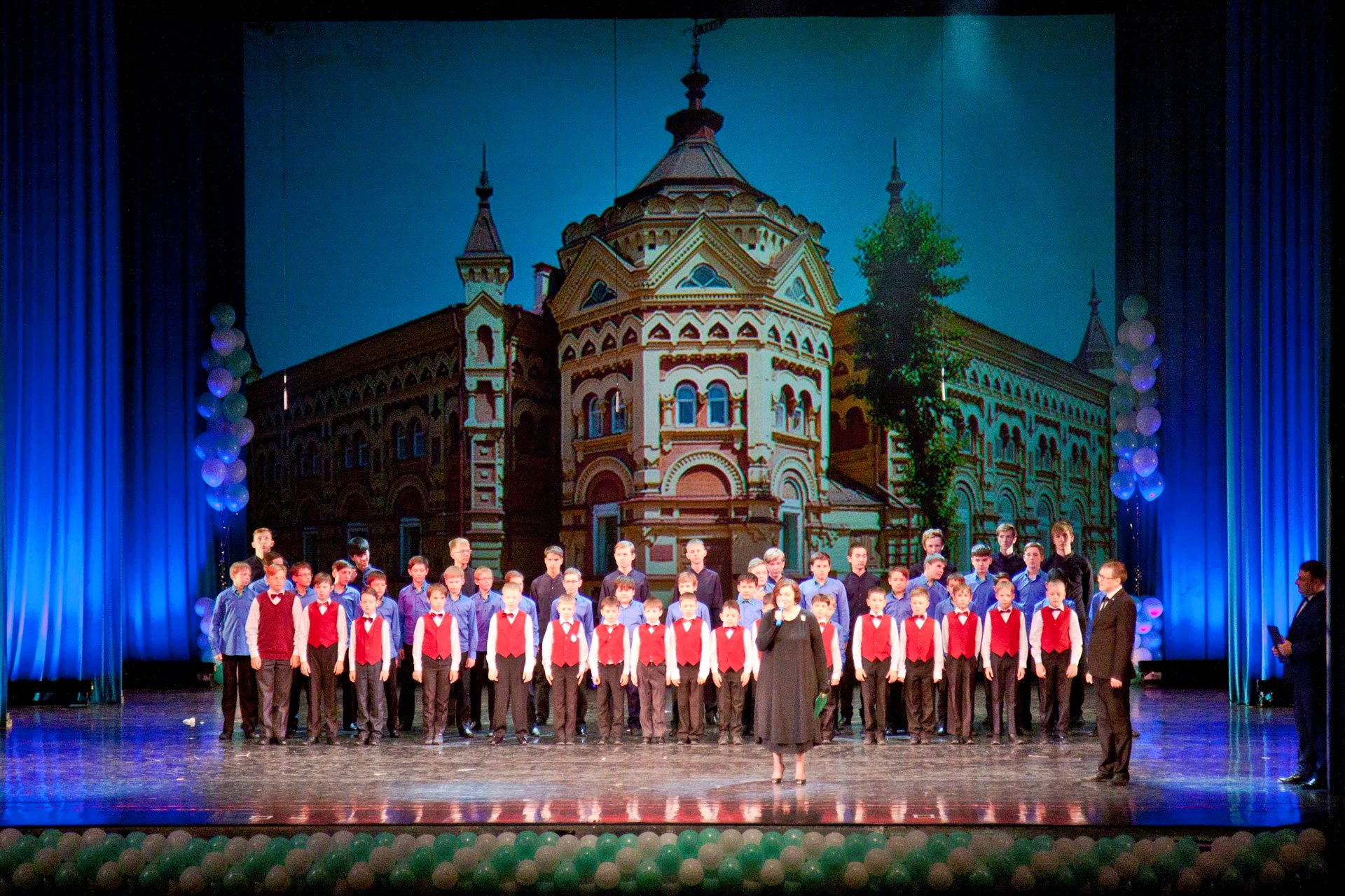 Кульминацией и сюрпризом концертной программы стал юбилейный гимн Дворца в авторстве и исполнении хоровой студии мальчиков и юношей «Байкал-хор» под руководством М.Ю. Кучеренко.