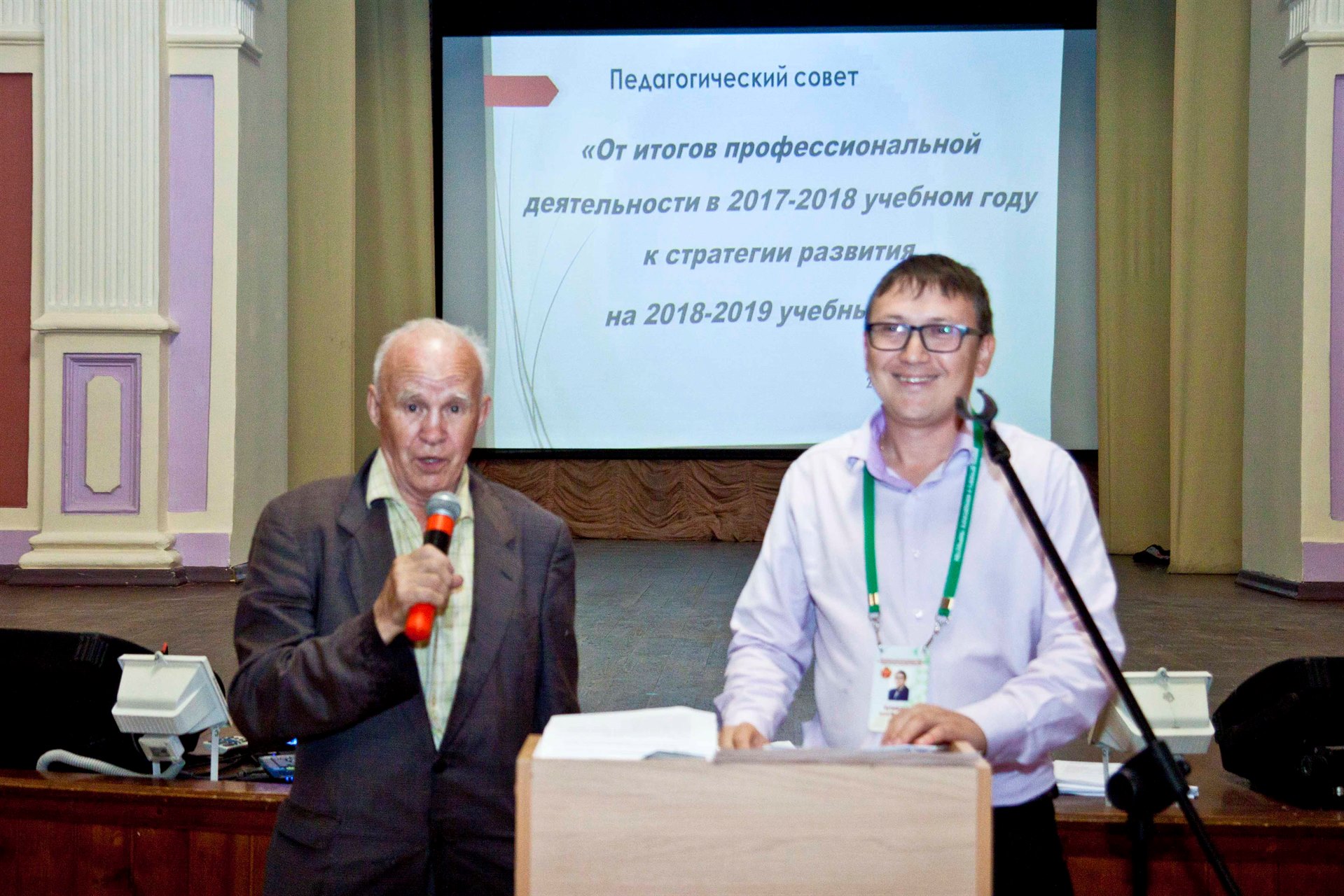 Итоги профессиональной деятельности педагогического коллектива за 2017-2018 учебный год представил Антон Михайлович Кутимский. В своём выступлении он отметил факторы и условия положительно повлиявшие на результаты деятельности за прошедший учебный год.