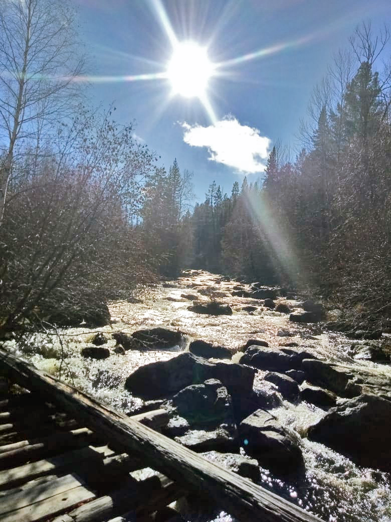 Дойдя до подножья скальника, мы перешли по мостику на другую сторону реки Большая Олха. Людей, как всегда, в районе «Витязя» было очень много, но найти свободную полянку не составило труда. Женская половина начала «накрывать на стол», а у мужской половины была другая задача: надо было заготовить дров и наладить костёр. Хоть погода была весьма теплая и, вроде как, костёр не нужен, но костёр – это не только тепло для тела и свет в темное время суток, костёр – это магическая, притягивающая к себе стихия, возле которой собираются люди, чтобы наполнить свои души теплом.
