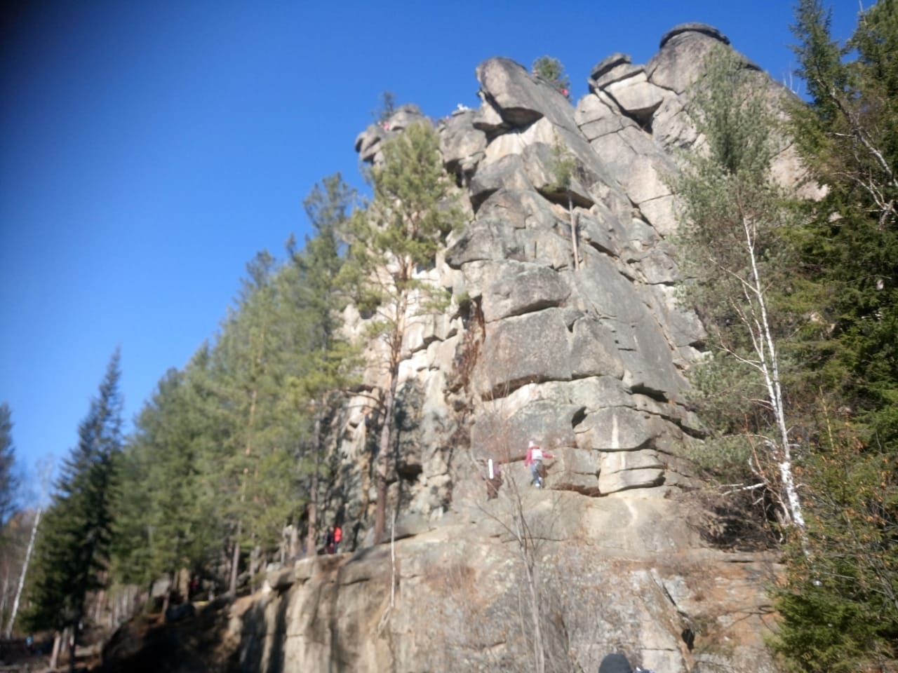 Отведенное время на сбор ягоды закончилось, и нам надо возвращаться на бивак к остальной группе. Придя на бивак, мы принялись за уборку поляны от мусора, который был кем-то оставлен до нас. Собранный мусор мы сожгли в костре. После этого костер затушили и принялись «штурмовать» ск. «Витязь». Нам предстояло сделать еще немного фото на вершине скальника и возвращаться на ж/д станцию по «верхней» тропе.