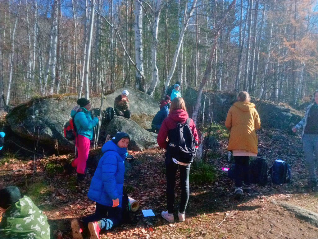 Данный ПВД (поход выходного дня) примечателен тем, что ряды «Лесных скитальцев» сильно пополнились. В этот раз в поход отправились 17 ребят и 3 родителей. Но мы не просто прогуливались, у нас была практическая работа с картой и ориентирование на местности, а также обозначение контрольных точек на карте. В данном походе вновь прибывшие «скитальцы» узнали, что на «Витязь» ведут две тропы. «Нижняя» тропа более длинная, но пологая, проходит по автомобильной дороге и приводит к подножью скальника «Витязь». А «верхняя» тропа покороче, но с крутыми подъемами, идет через лес и ведет на вершину скальника.