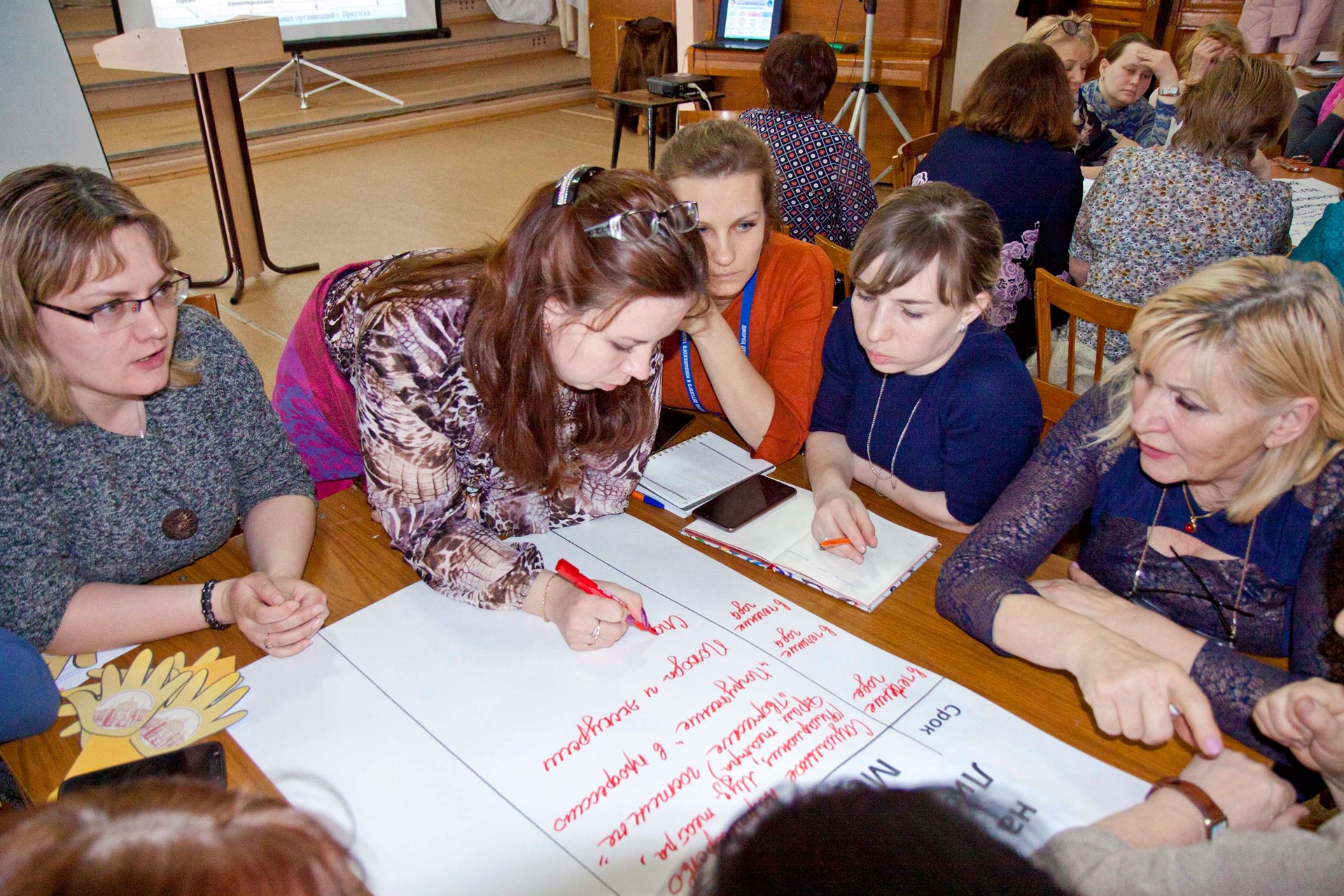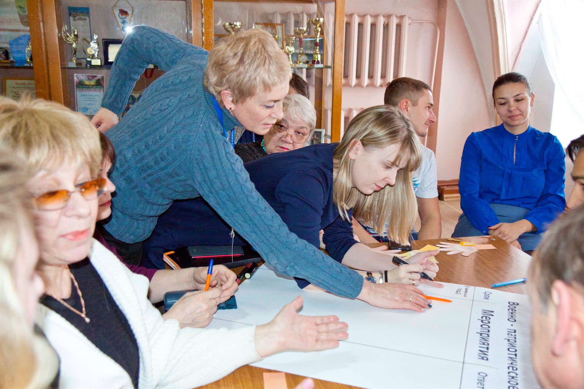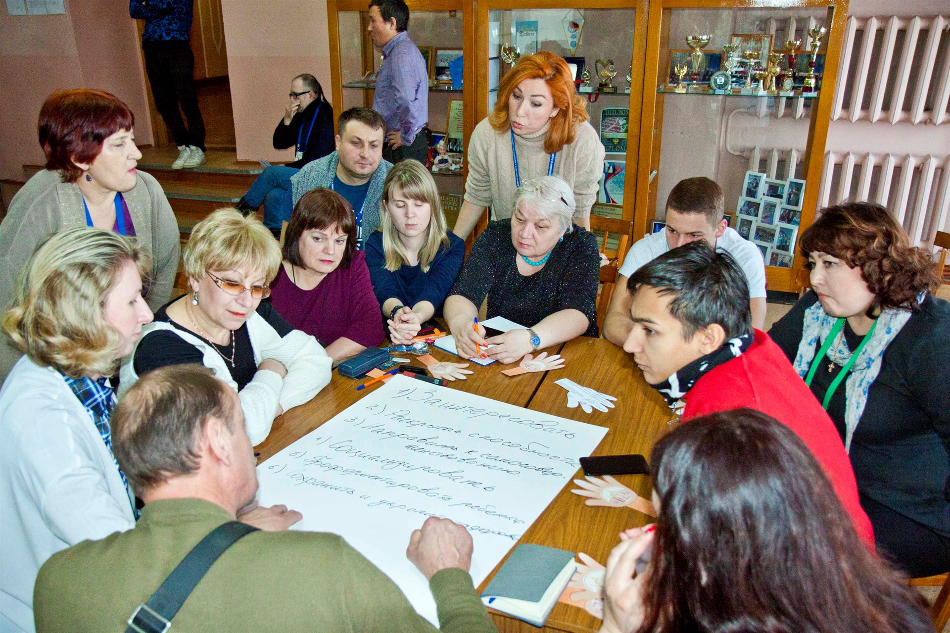 06 февраля в нашем Дворце состоялся педагогический совет "Воспитательная система Дворца творчества – Навстречу друг другу". В ходе работы перед педагогическим коллективом выступил научный руководитель Дворца – Светлана Владимировна Кирдянкина. Она рассказала о инновационных подходах в реализации воспитательных идей учреждений дополнительного образования, после чего педагогами был разработан социальный заказ перед Дворцом творчества на ближайшие 5 лет от лица педагогов, родителей, обучающихся и учредителя. Во второй части педагогического совета выступил заместитель директора по УВР Сергей Владимирович Перфильев, который рассказал о проектах Российского движения школьников и о возможностях структуры движения школьников в воспитательной системы Дворца творчества. Решением педагогического совета стало: