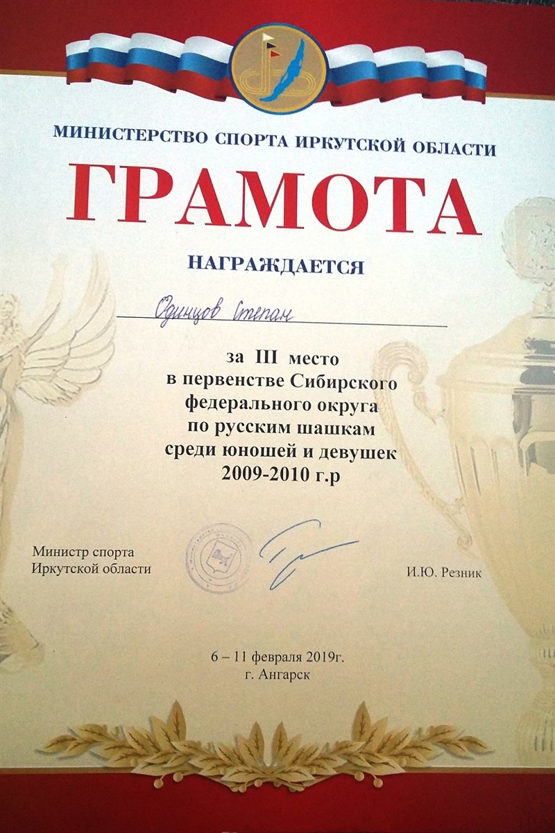 С 6 по 11 февраля в г. Ангарске, Иркутской области проходило первенство Сибирского федерального округа по русским шашкам среди юношей и девушек. В нем приняли участие спортсмены из Кемеровской, Иркутской областей и Красноярского края, всего 95 человек.