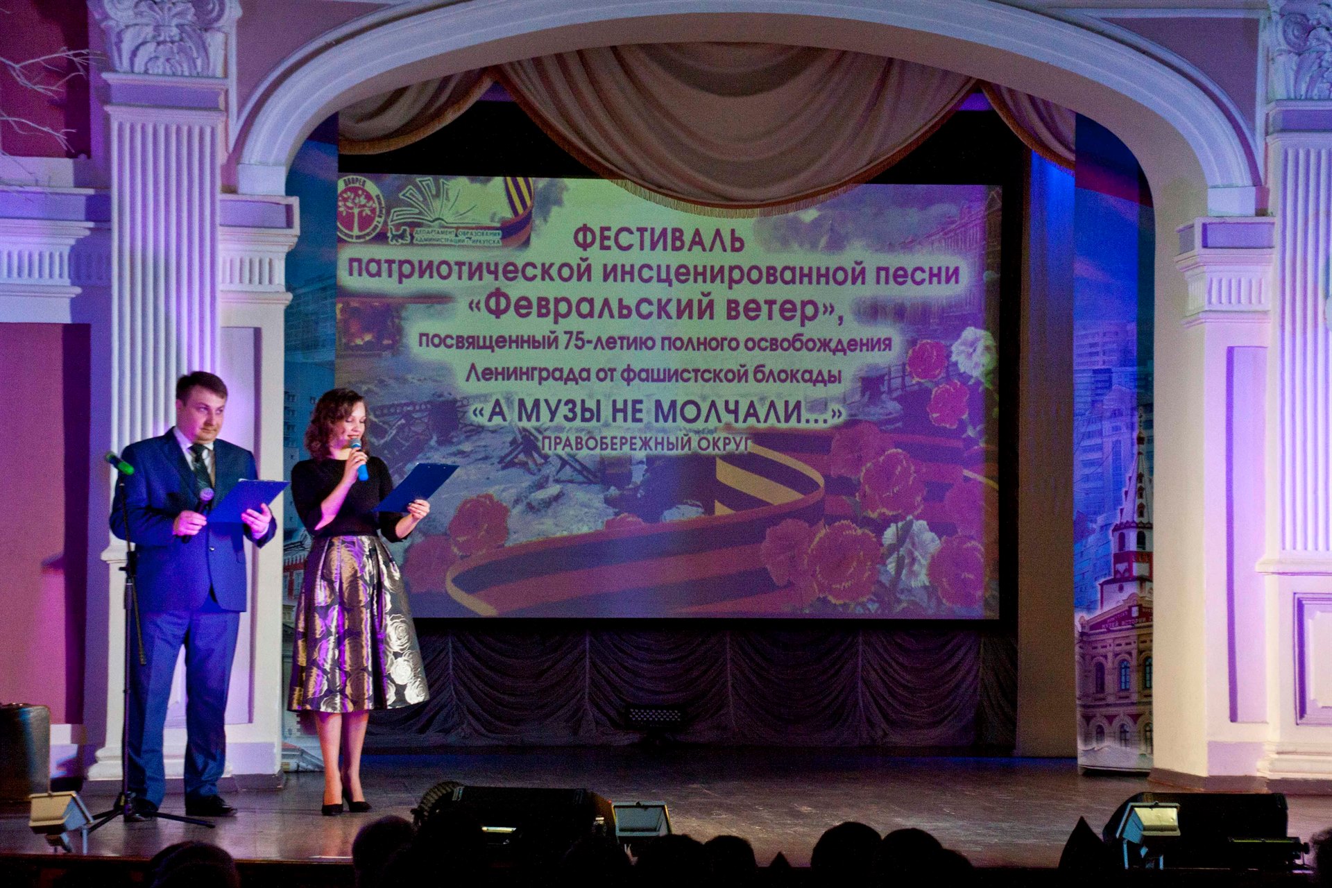 Сегодня во Дворце прошел окружной фестиваль патриотической инсценированной песни «Февральский ветер», посвященный 75-летию полного освобождения Ленинграда от фашистской блокады «А музы не молчали».