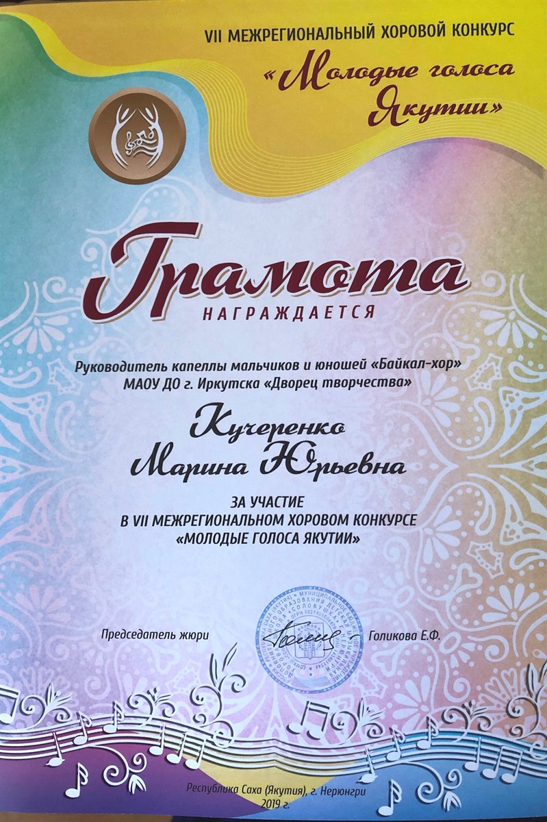 ПОЗДРАВЛЯЕМ С ЗАСЛУЖЕННОЙ ПОБЕДОЙ Кучеренко Марину Юрьевну и Капеллу «Байкал-хор»!