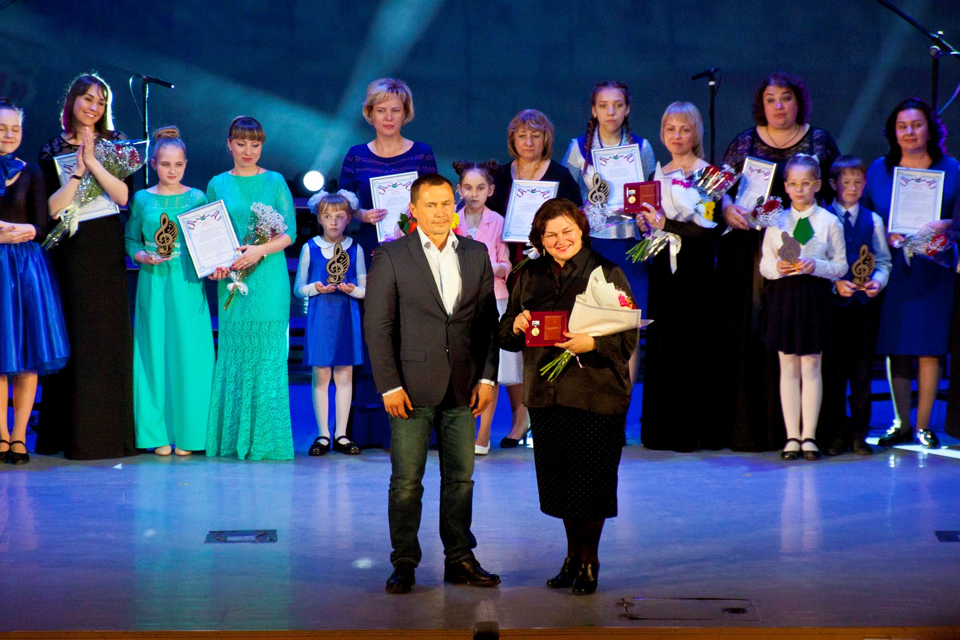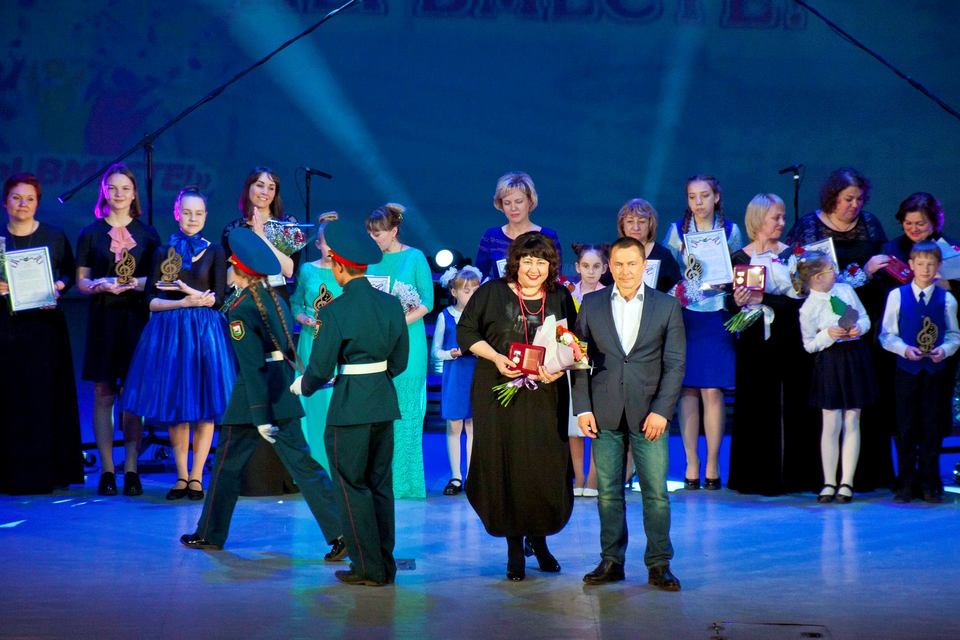 В рамках фестиваля Дмитрий Викторович вручил медали "За верность профессии" руководителям хоровых коллективов, которые, в силу своего таланта и любви к музыке, много лет отдали популяризации хорового пения в своих образовательных организациях, которые еще с первого хорового фестиваля стали его душой. Среди них педагог Дворца, руководитель хоровой студии мальчиков и юношей "Байкал-хор" Марина Юрьевна Кучеренко и старший методист, режиссер хорового фестиваля, Наталья Георгиевна Быргазова.