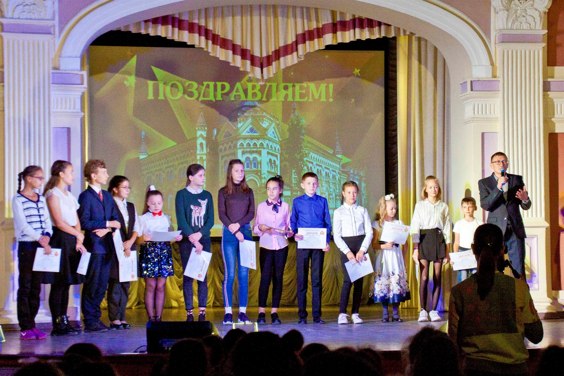 На торжественной линейке учащихся и педагогов поздравил директор Дворца, Антон Михайлович Кутимский, и вручил почетные грамоты победителям в номинации «Гордость Дворца».