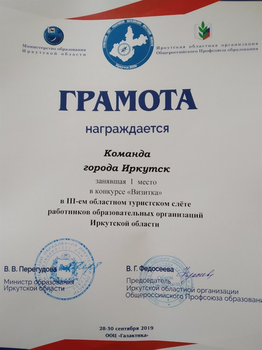 Поздравляем команду '"Максимум", успешно представившую город Иркутск на III областном туристическом слете работников образовательных организаций Иркутской области!