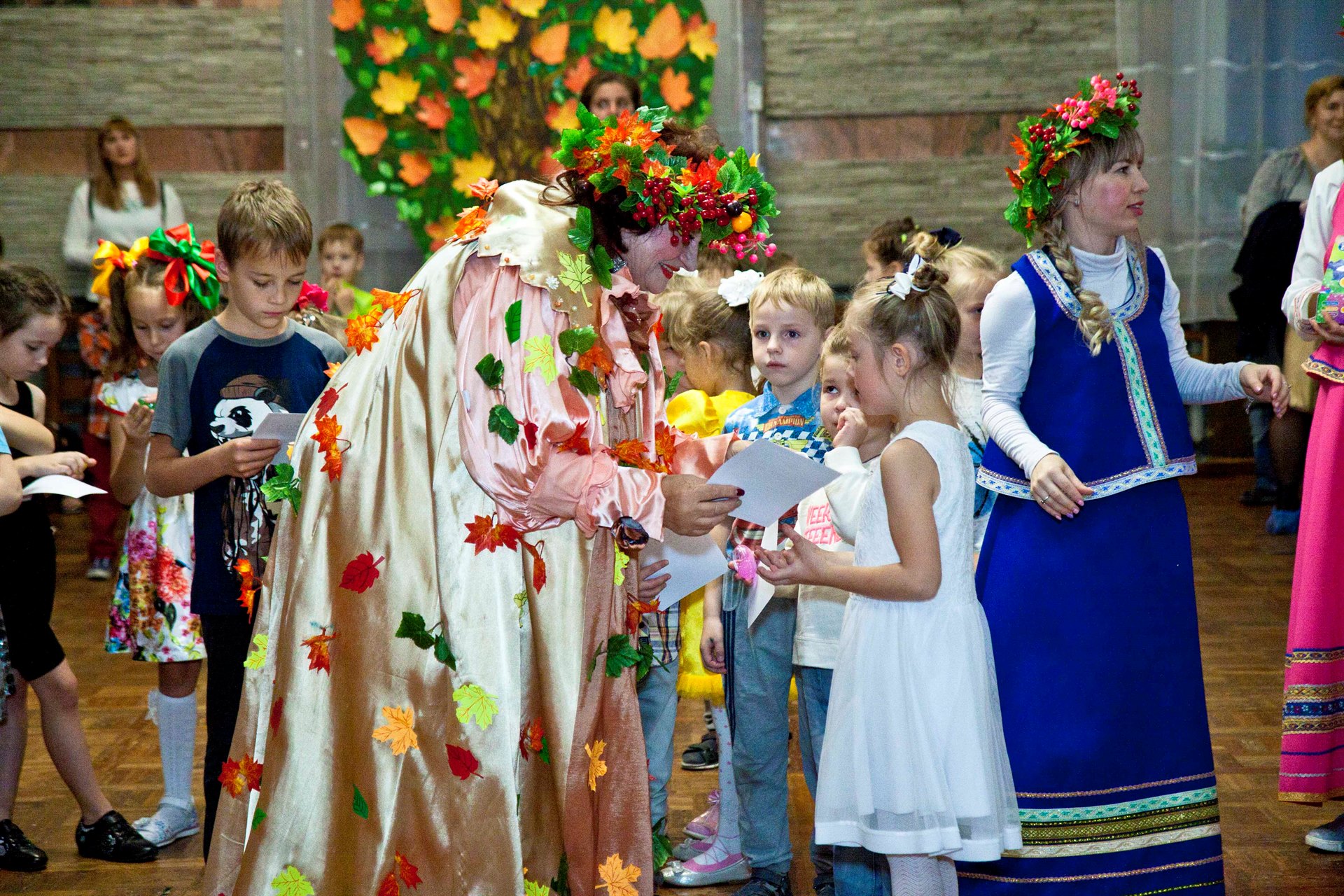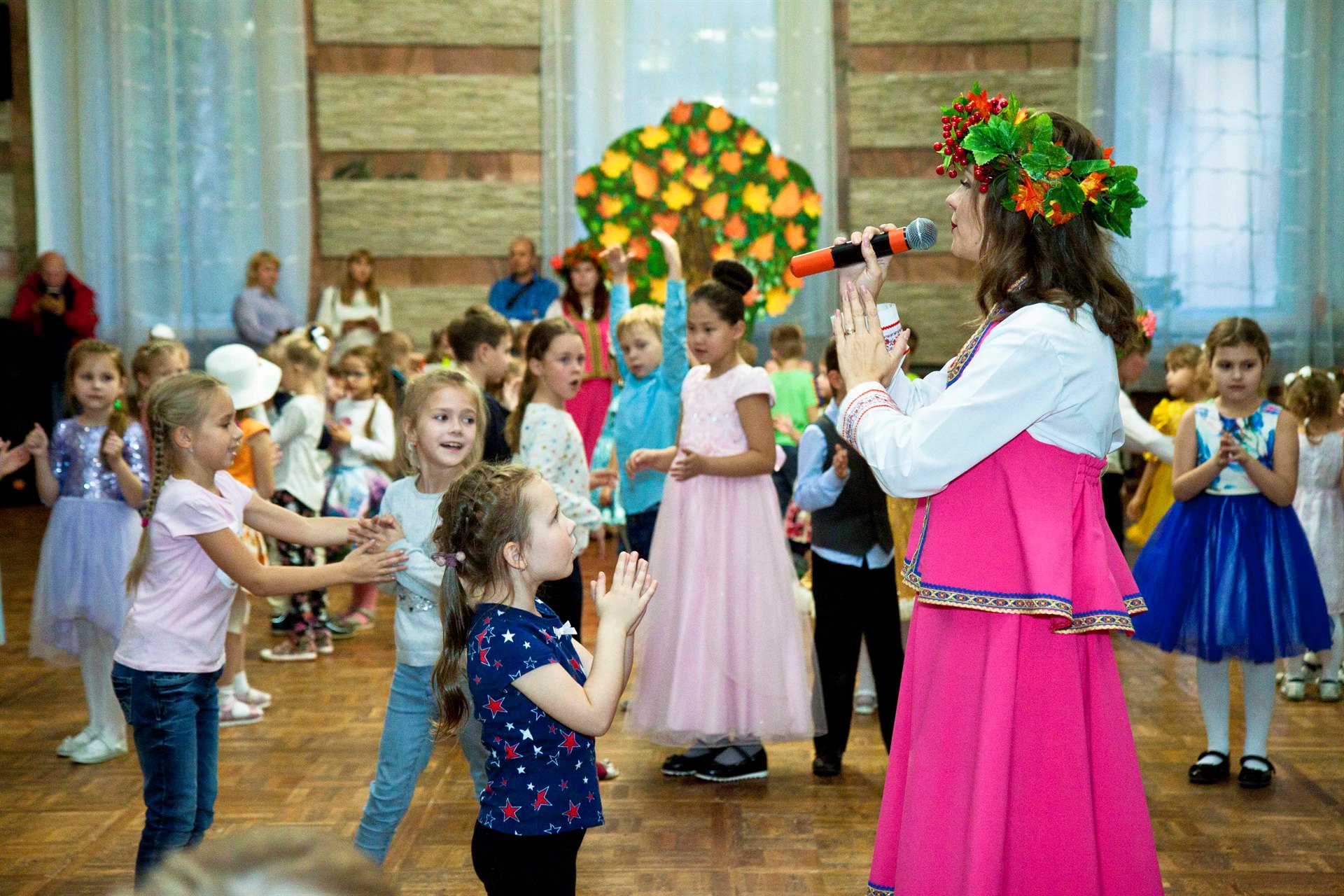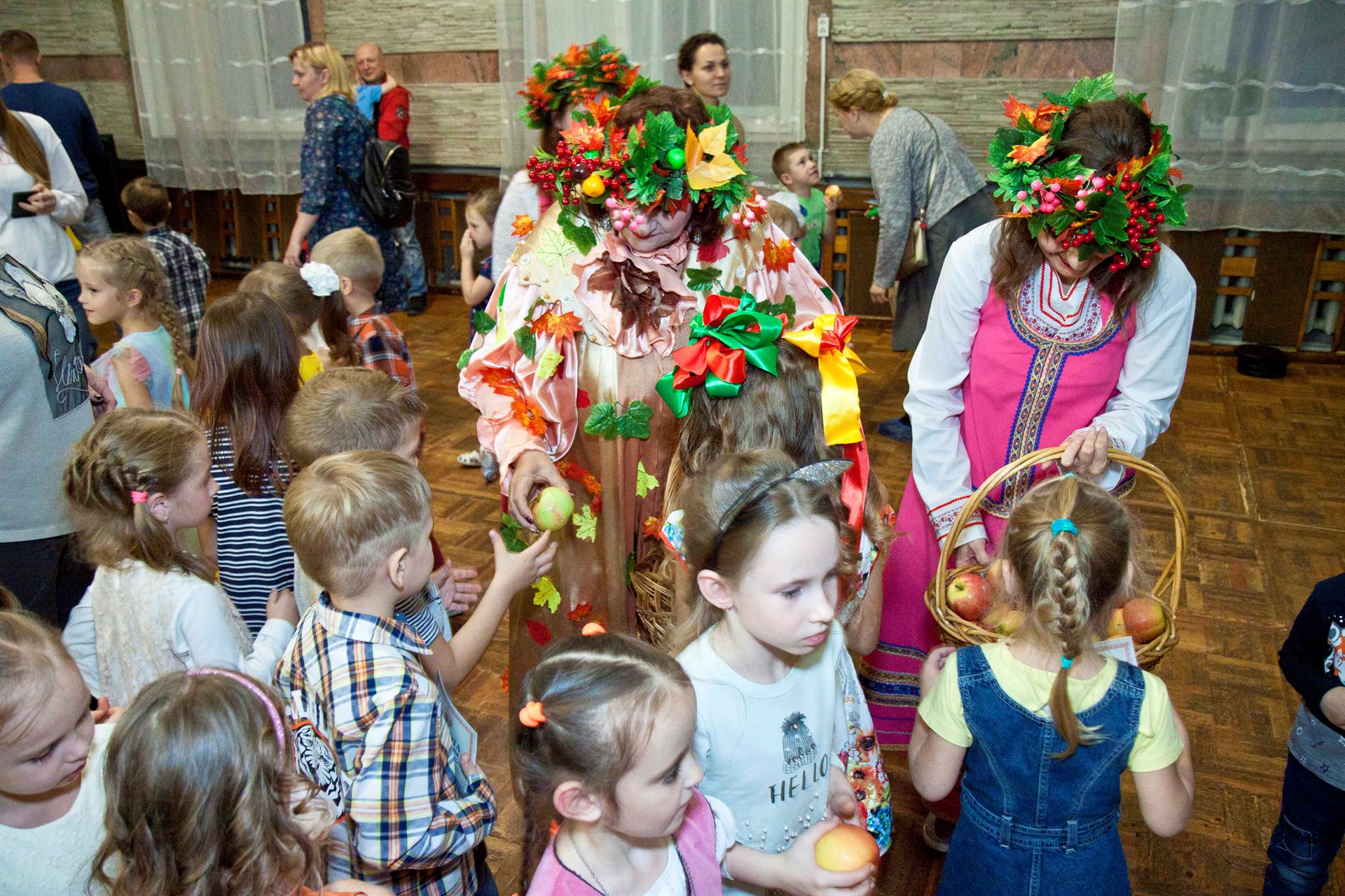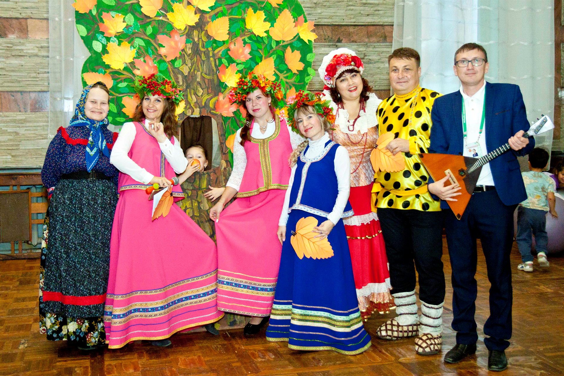 Смех, радость и улыбки ждут каждого, кто посетит игровую программу в русско-народном стиле с песнями и танцами. Все желающие могут рассказать стихотворение, подарить творческий подарок тетушке Осени.