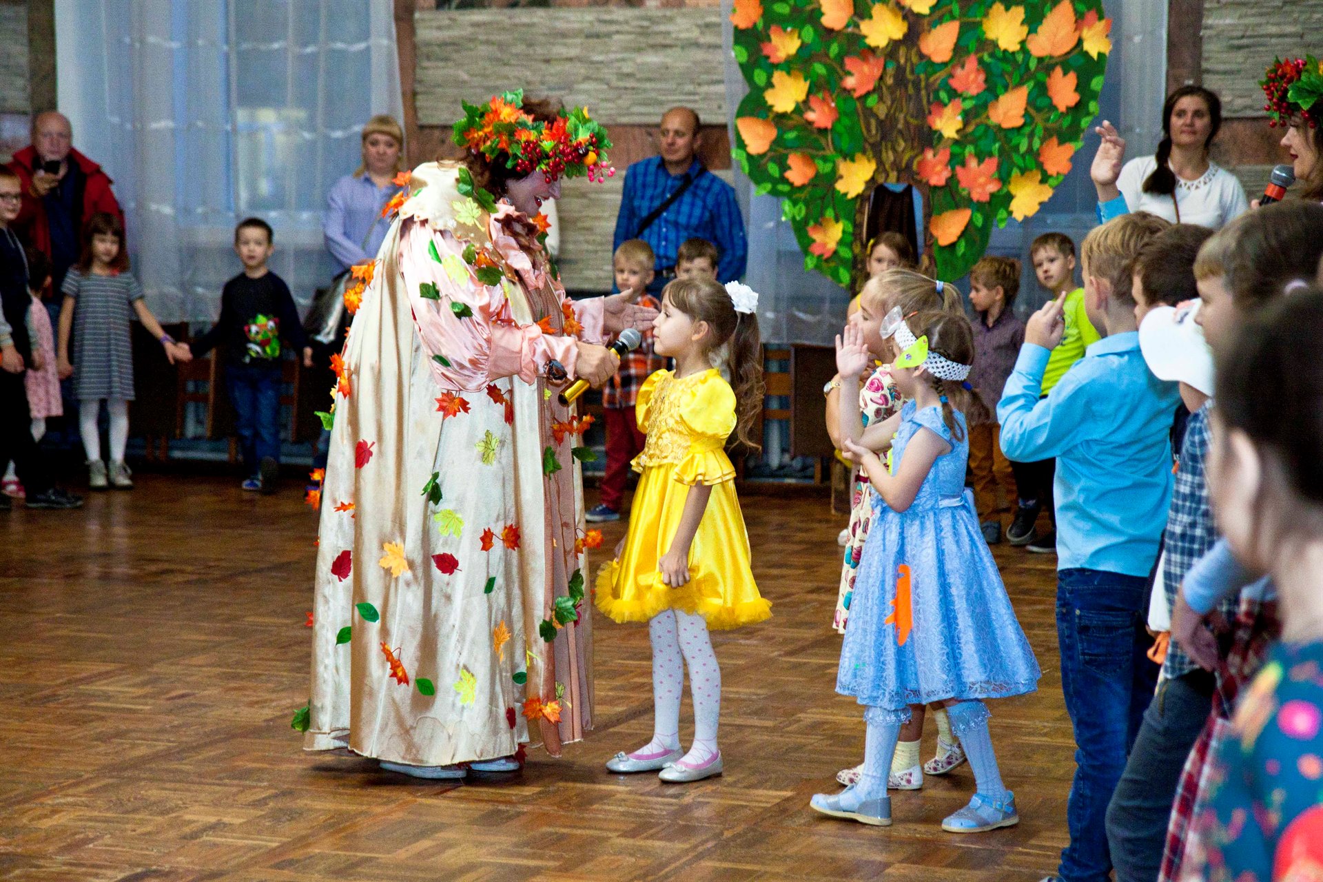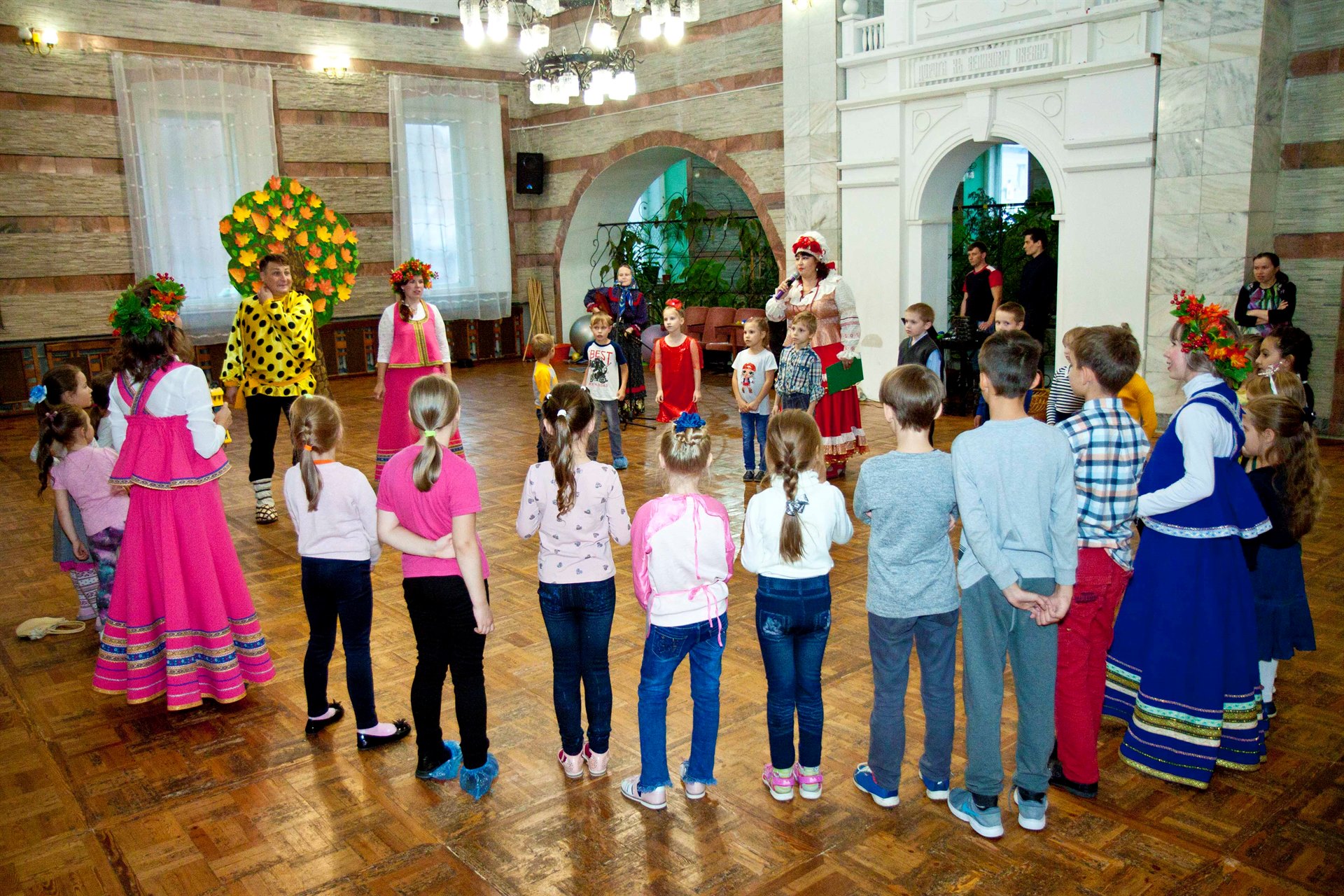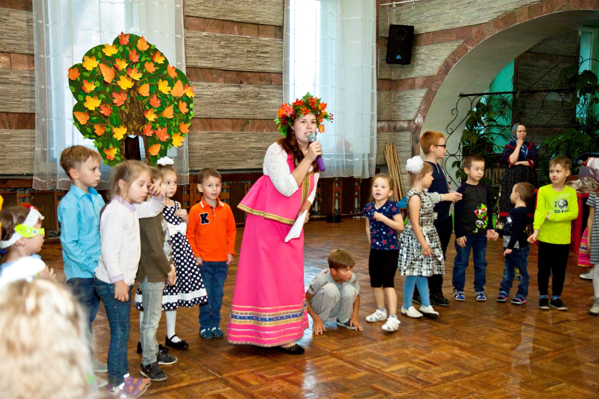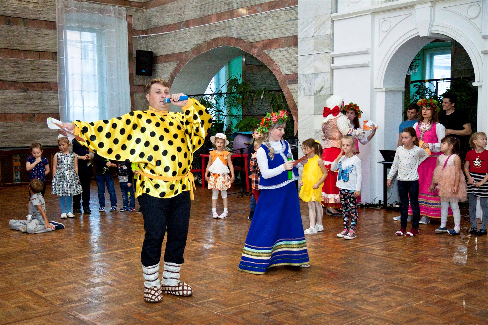 Смех, радость и улыбки ждут каждого, кто посетит игровую программу в русско-народном стиле с песнями и танцами. Все желающие могут рассказать стихотворение, подарить творческий подарок тетушке Осени.
