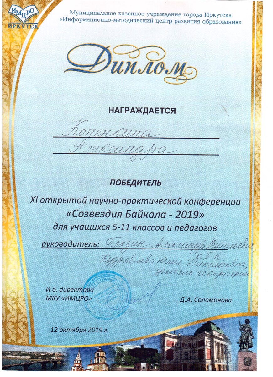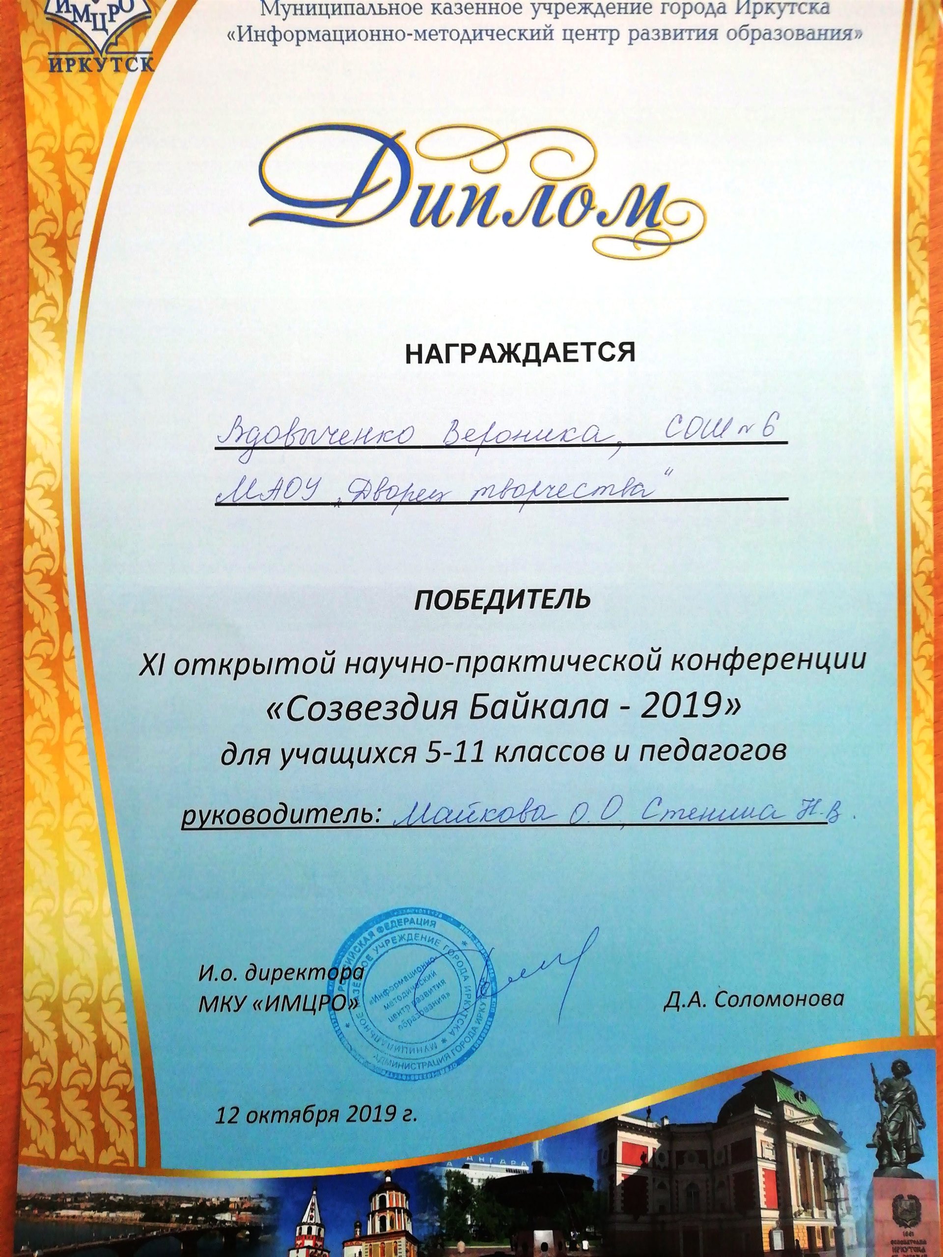 Некоторые из этих юных исследователей проводили свои эксперименты и наблюдения в течение лета, поэтому они успели приготовиться и рассказать о своих научных результатах на первой в этом учебном году XI городской научно-практической конференции «Созвездия Байкала – 2019» для учащихся 5-11 классов и педагогов, которая состоялась 12 октября.