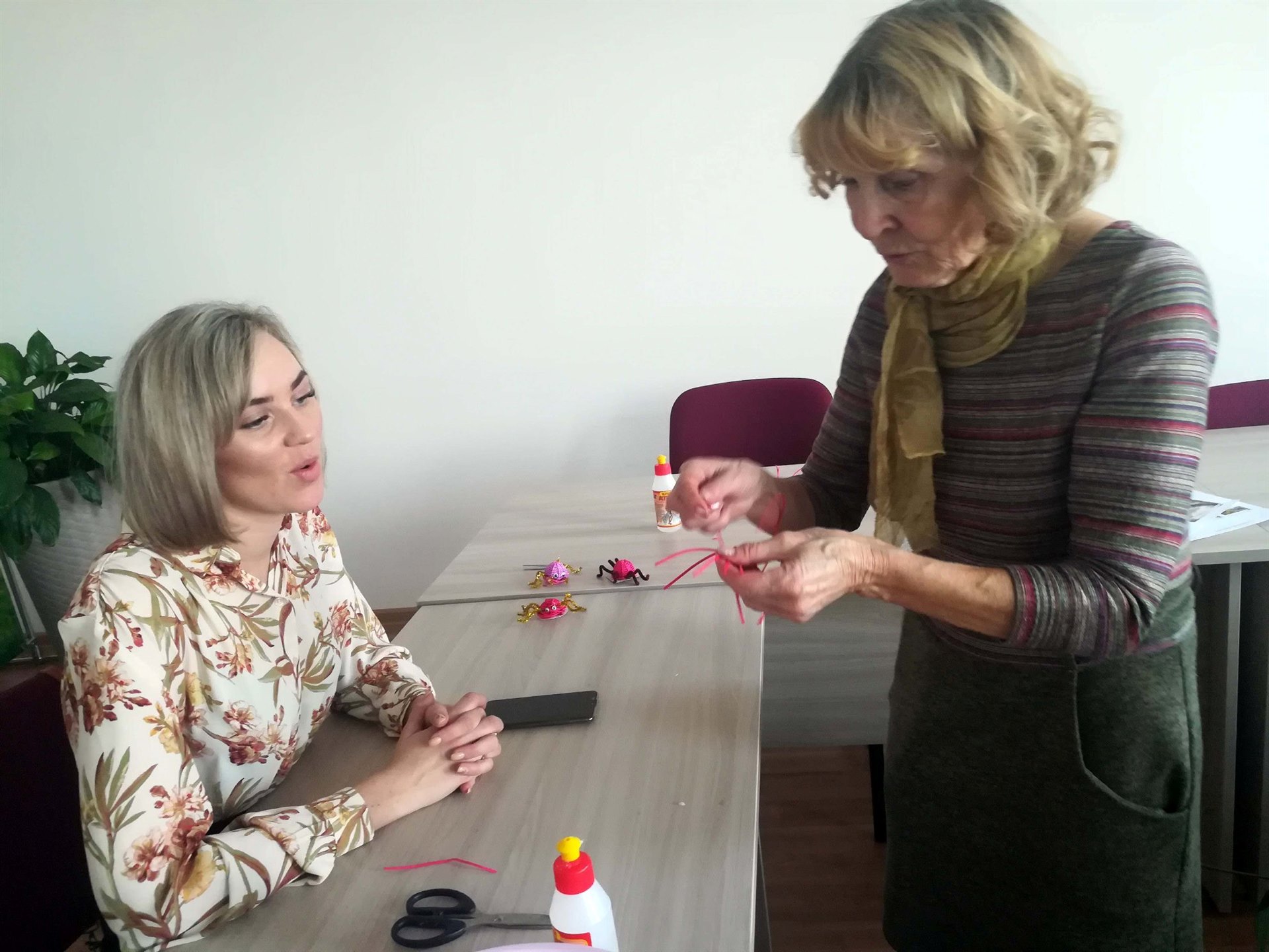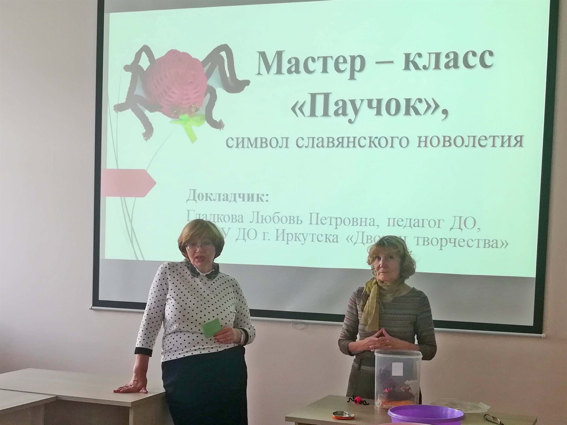 Любовь Петровна рассказала про славянский гороскоп и представила его. Мастер-класс прошел в дружелюбной атмосфере и всем очень понравился. Рукодельницы поучились плетению из ротанга и сделали милые сувениры – символ наступающего года по славянскому календарю – паука. Благодаря мастер-классу педагоги освоили плетение, которое является основой корзинок и других прикладных вещей.