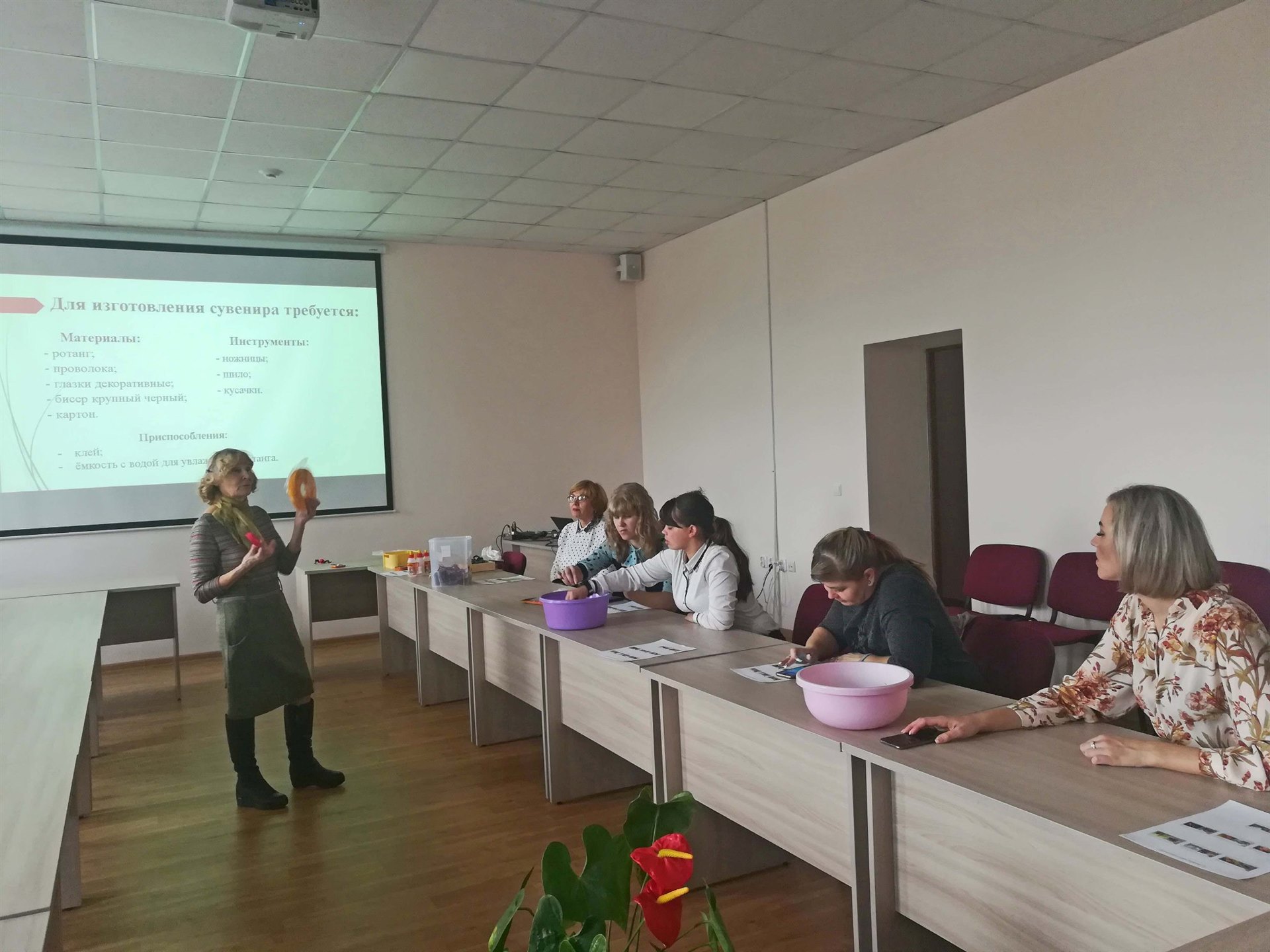 7 ноября педагог дополнительного образования Гладкова Любовь Петровна провела мастер-класс "Плетение из ротанга" для педагогических работников ОО в Доме Учителя.