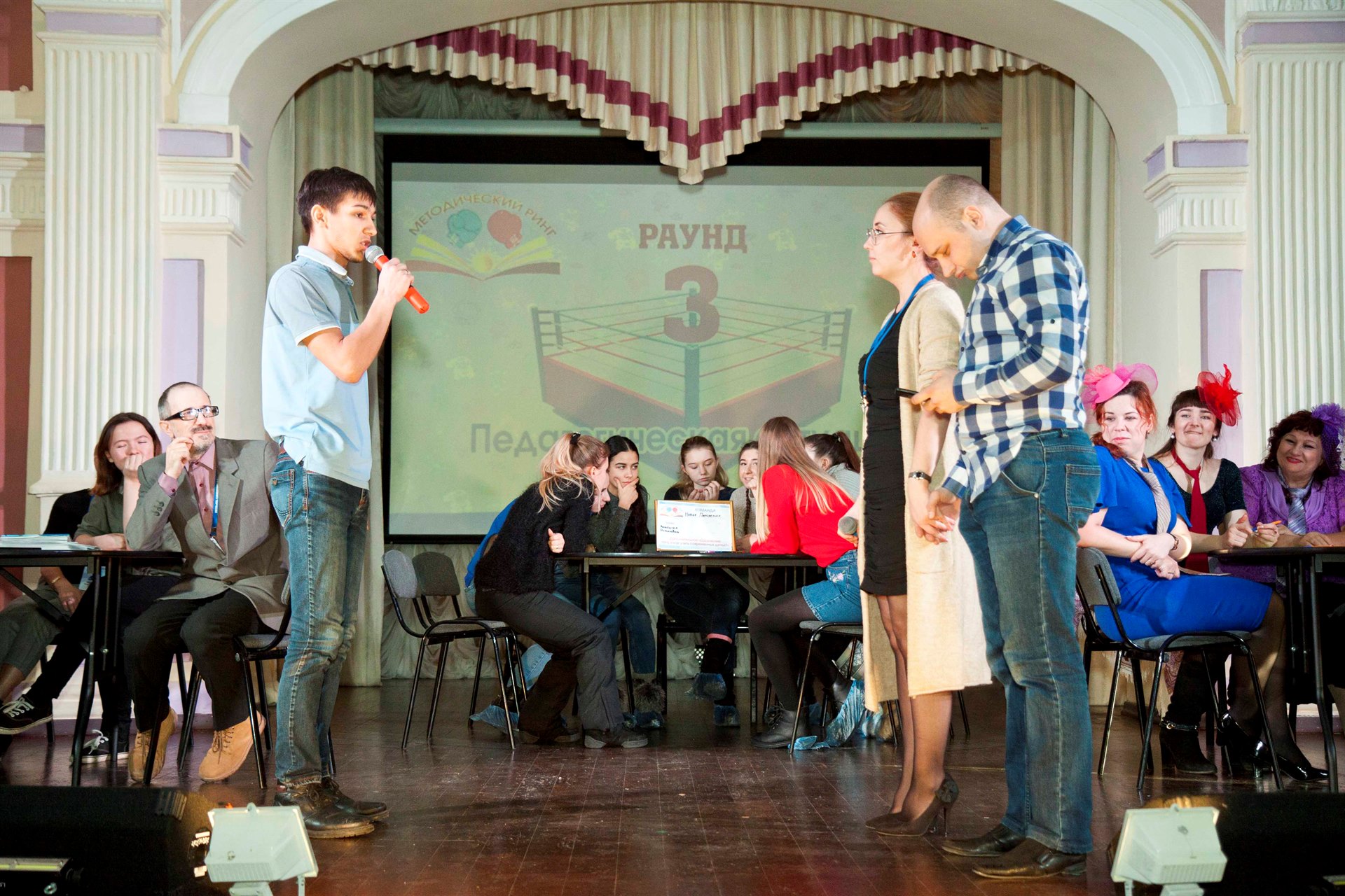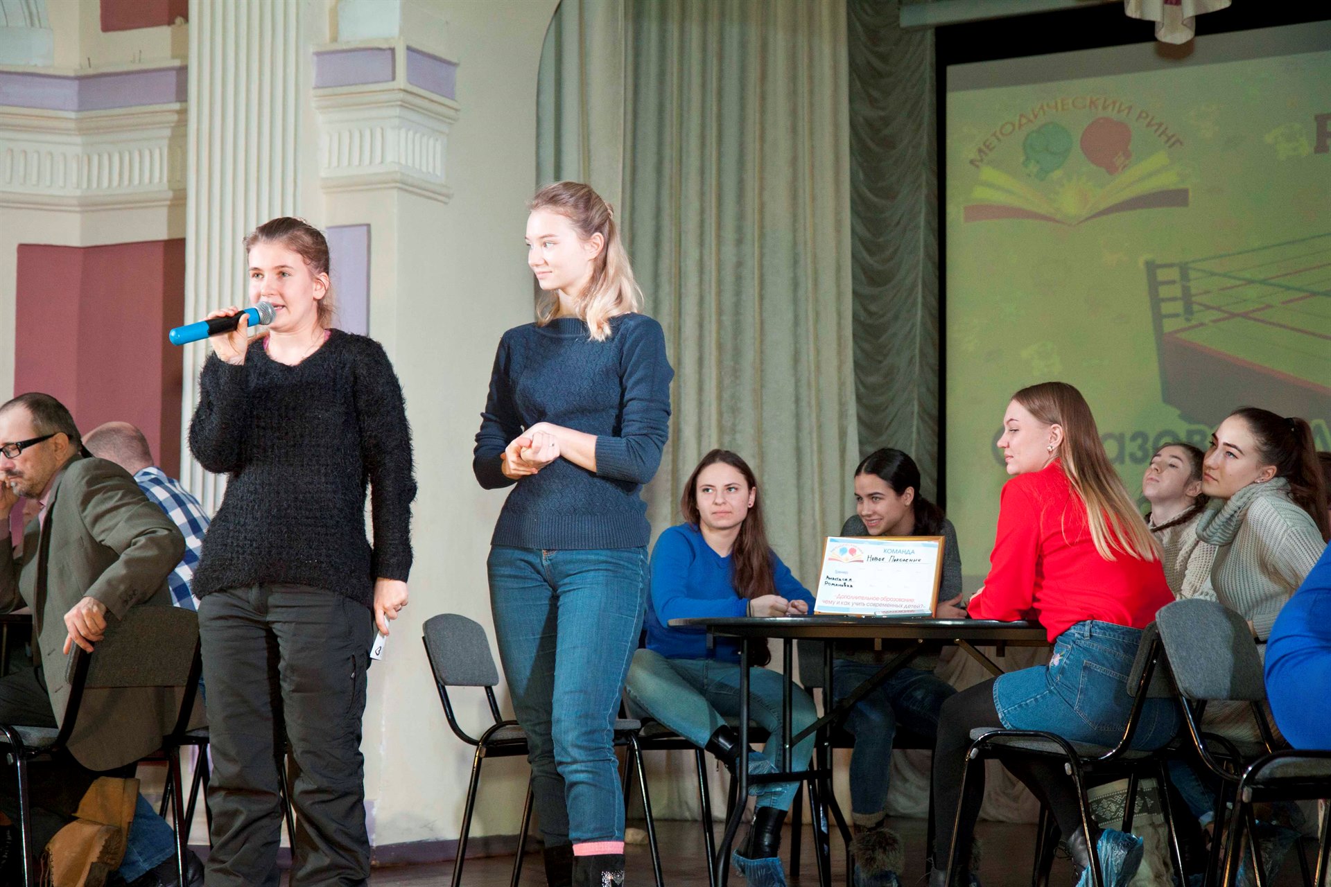 В методическом ринге приняли участие три команды, одна из них команда студентов ГБПОУ «Иркутский региональный колледж педагогического образования». Изначально студенты пришли во Дворец, как гости. На предложение принять участие в методическом ринге откликнулись с большим удовольствием. Их команда под названием «Новое поколение» нисколько не уступала мастерам педагогического труда, а в отдельных раундах проявляла даже более оригинальный подход в решении педагогических ситуаций.