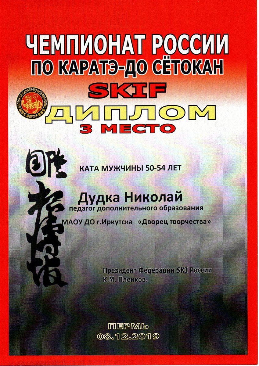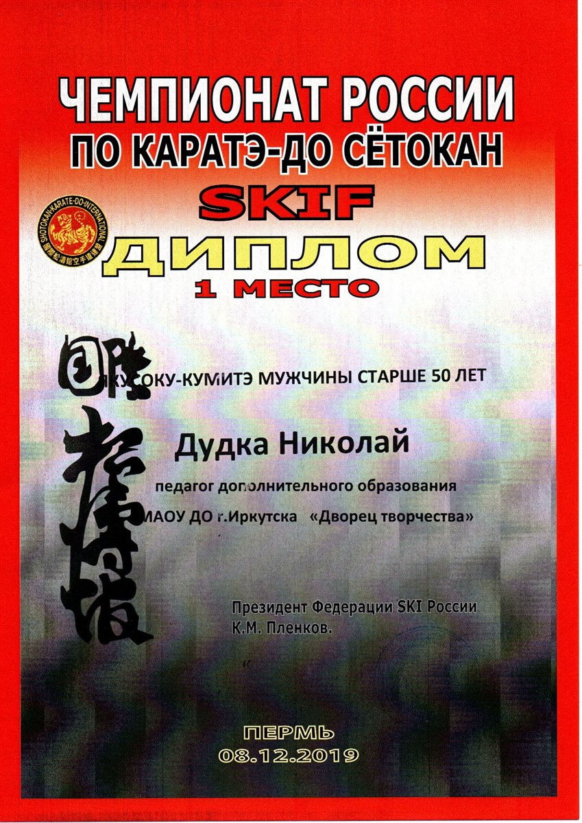 Педагог дополнительного образования Дворца творчества Дудка Николай Николаевич принял участие в Чемпионате и стал стал чемпионом России в "кумитэ" и бронзовым призёром в дисциплине "ката".