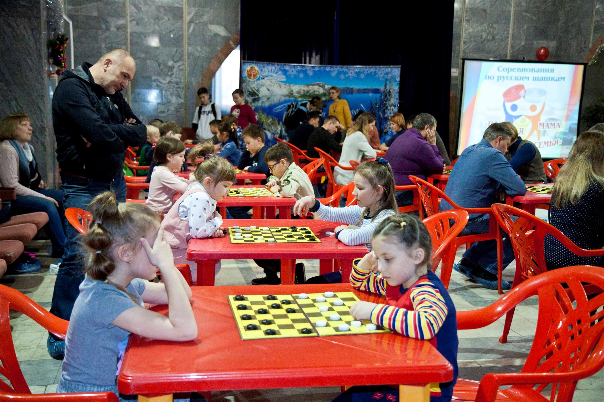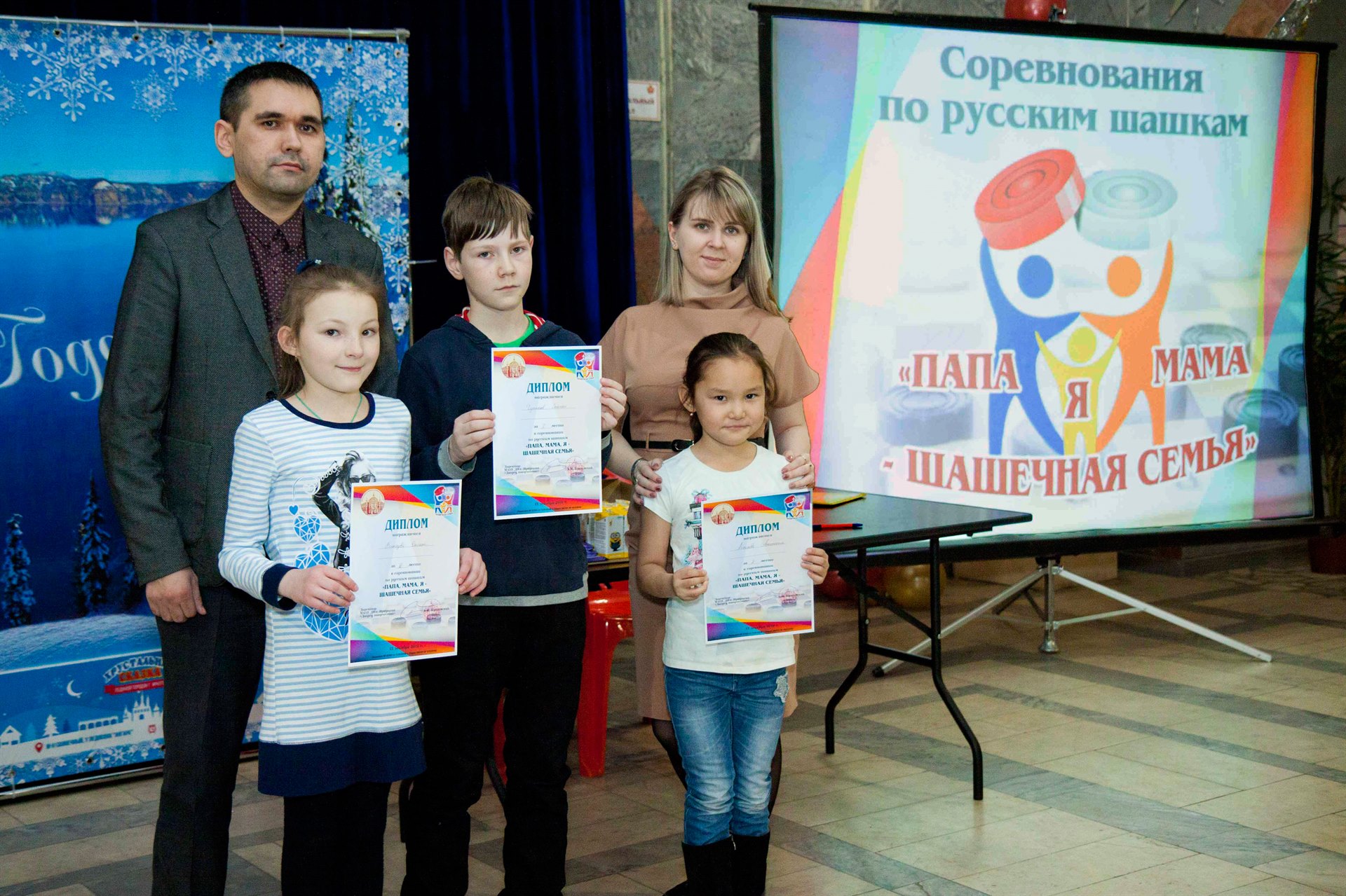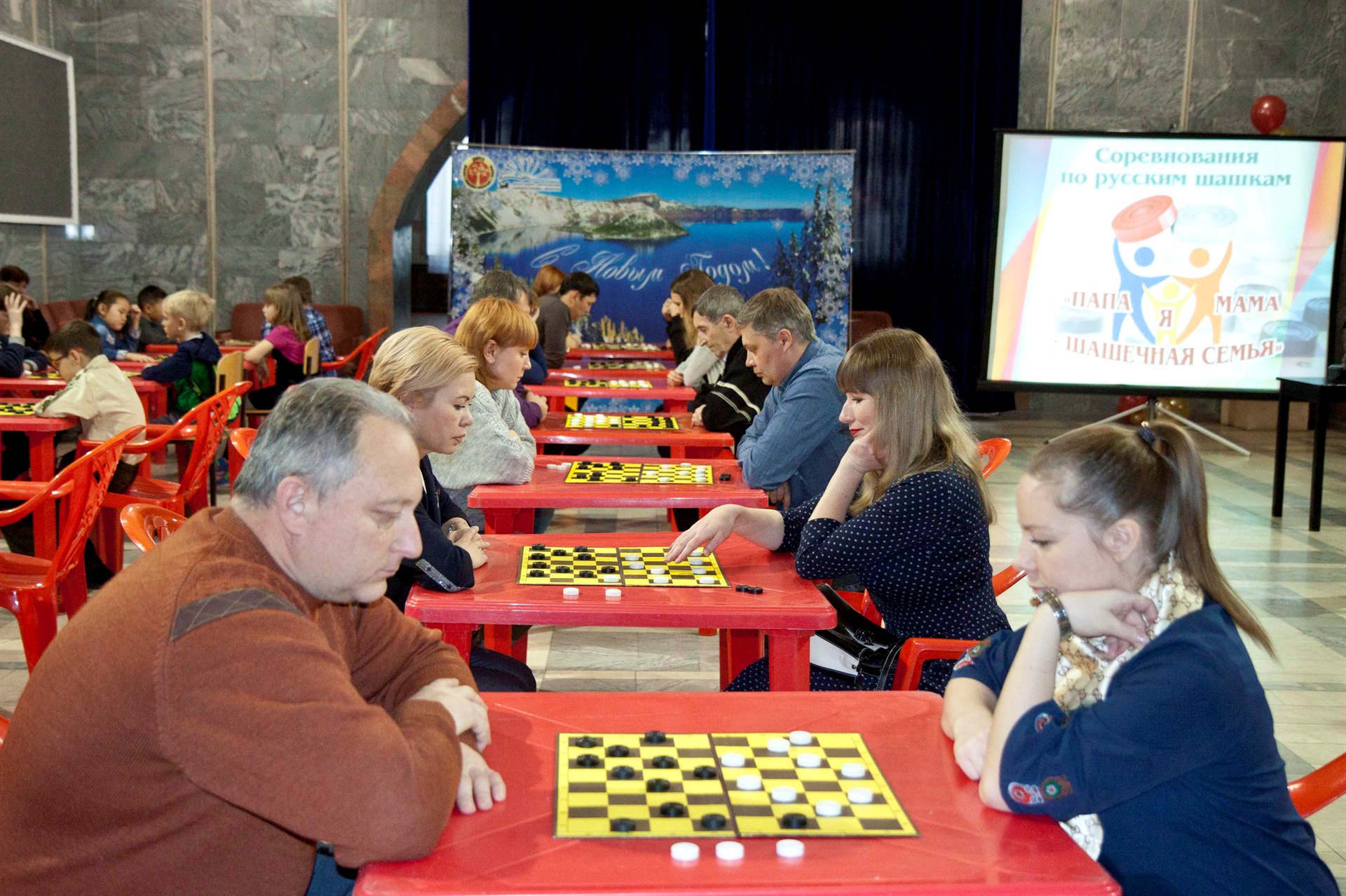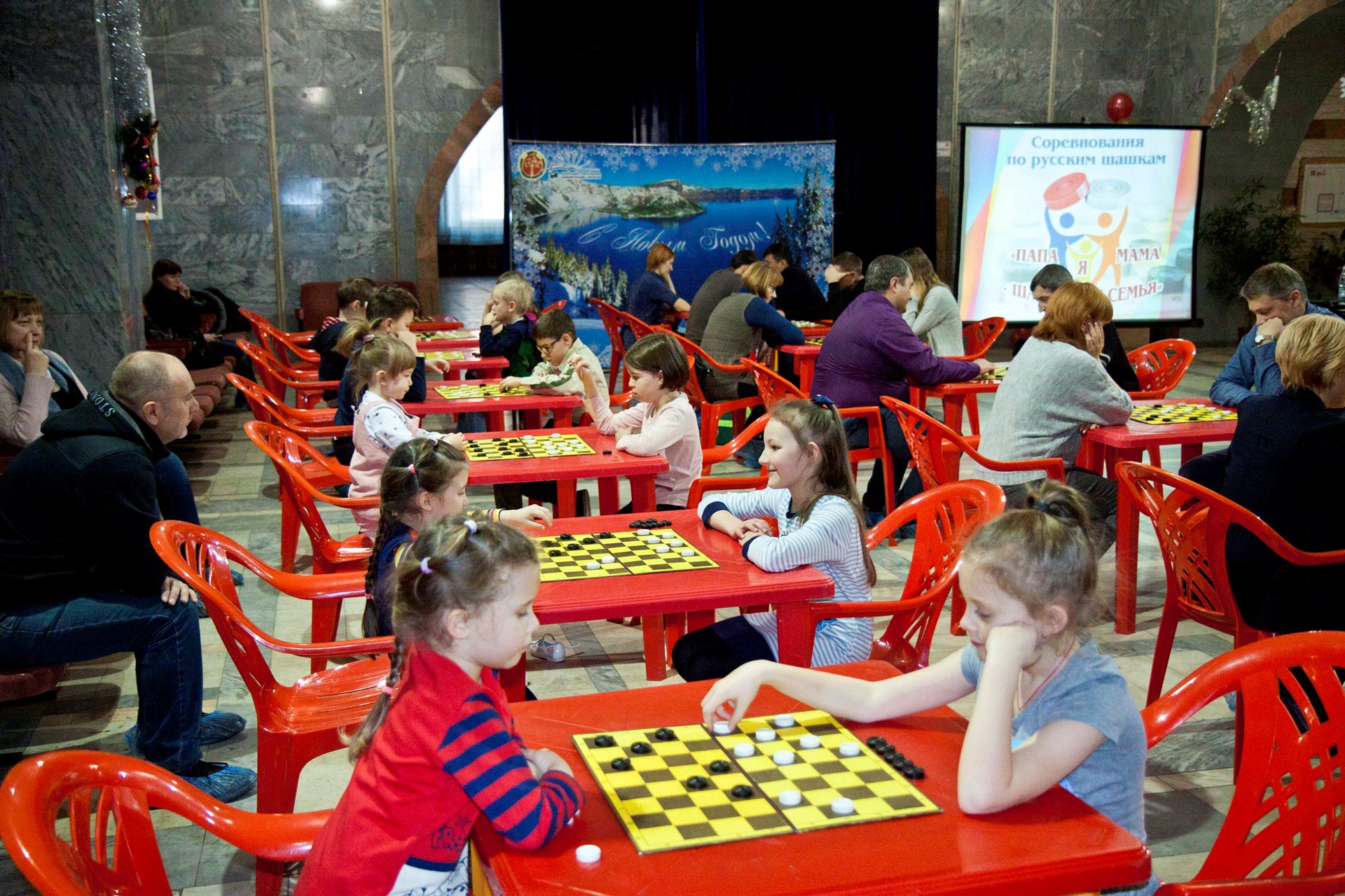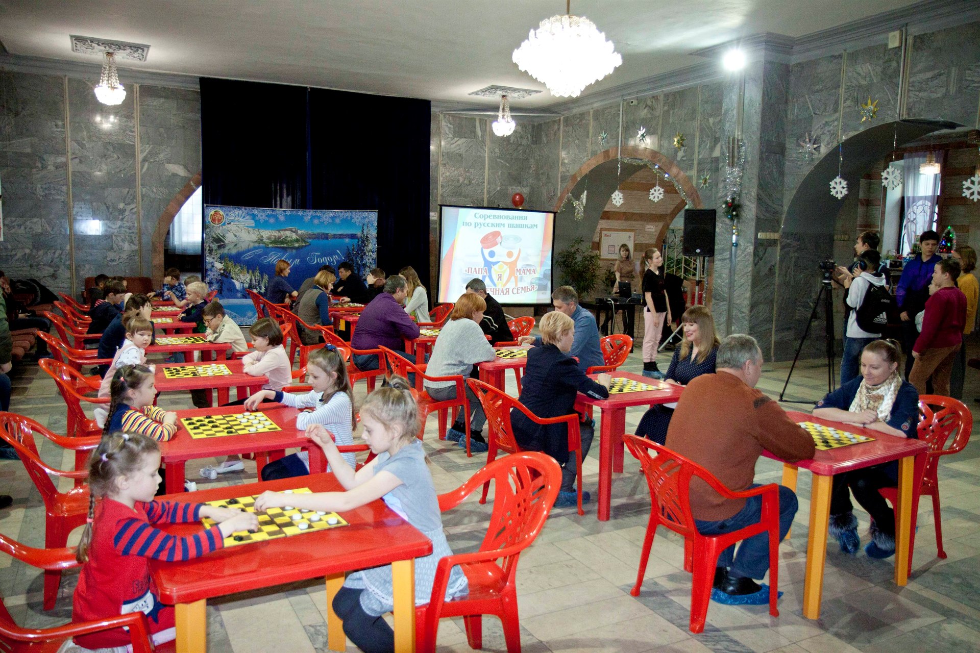 Сегодня, 15 декабря, во Дворце творчества прошло замечательное спортивное событие – соревнования по русским шашкам «Мама, папа, я – шашечная семья».