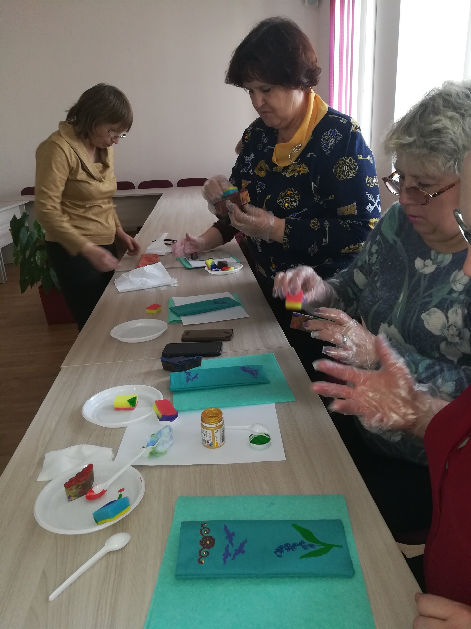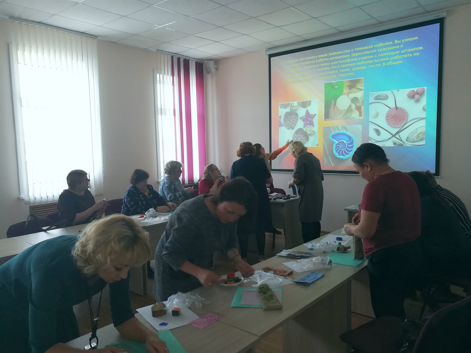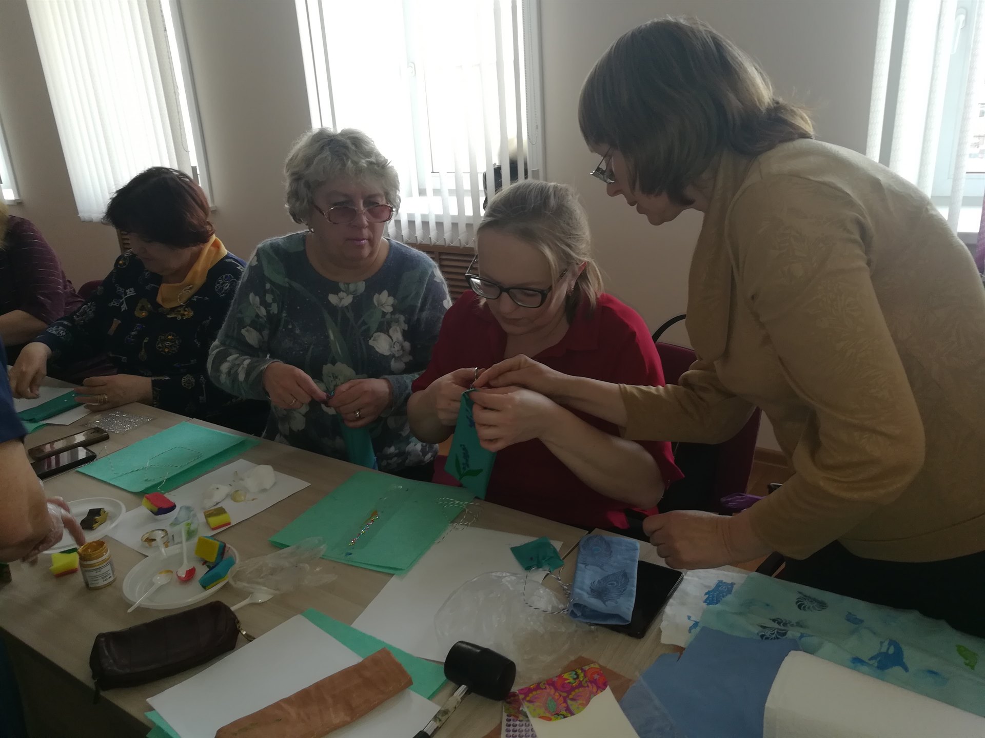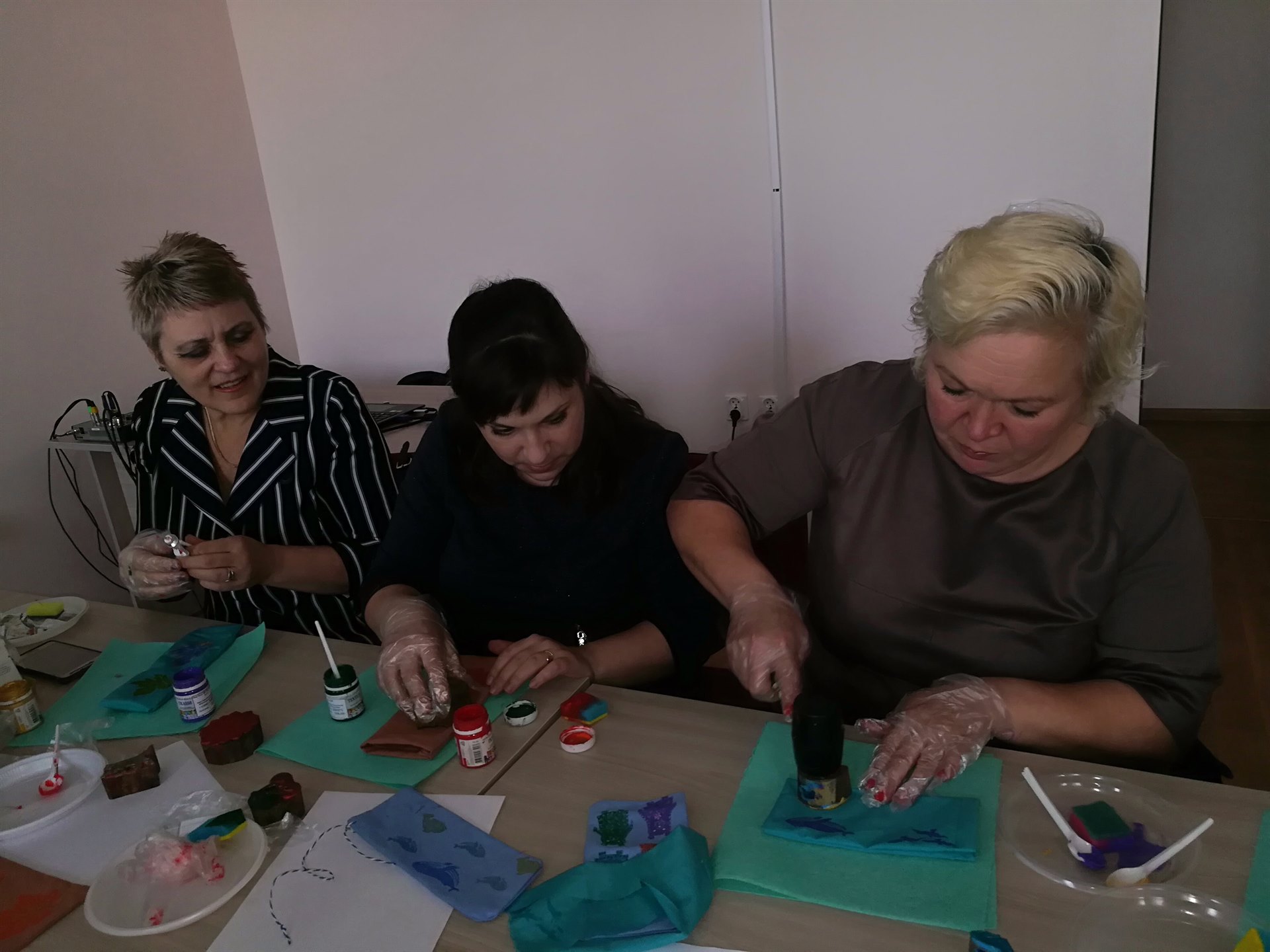 Во время мастер-класса Татьяна Валерьевна познакомила участников с техникой «набойка на ткани»; рассказала о происхождении данной техники, ее развитии и распространении; объяснила какие необходимы материалы и инструменты, где и как можно применять данную технику.