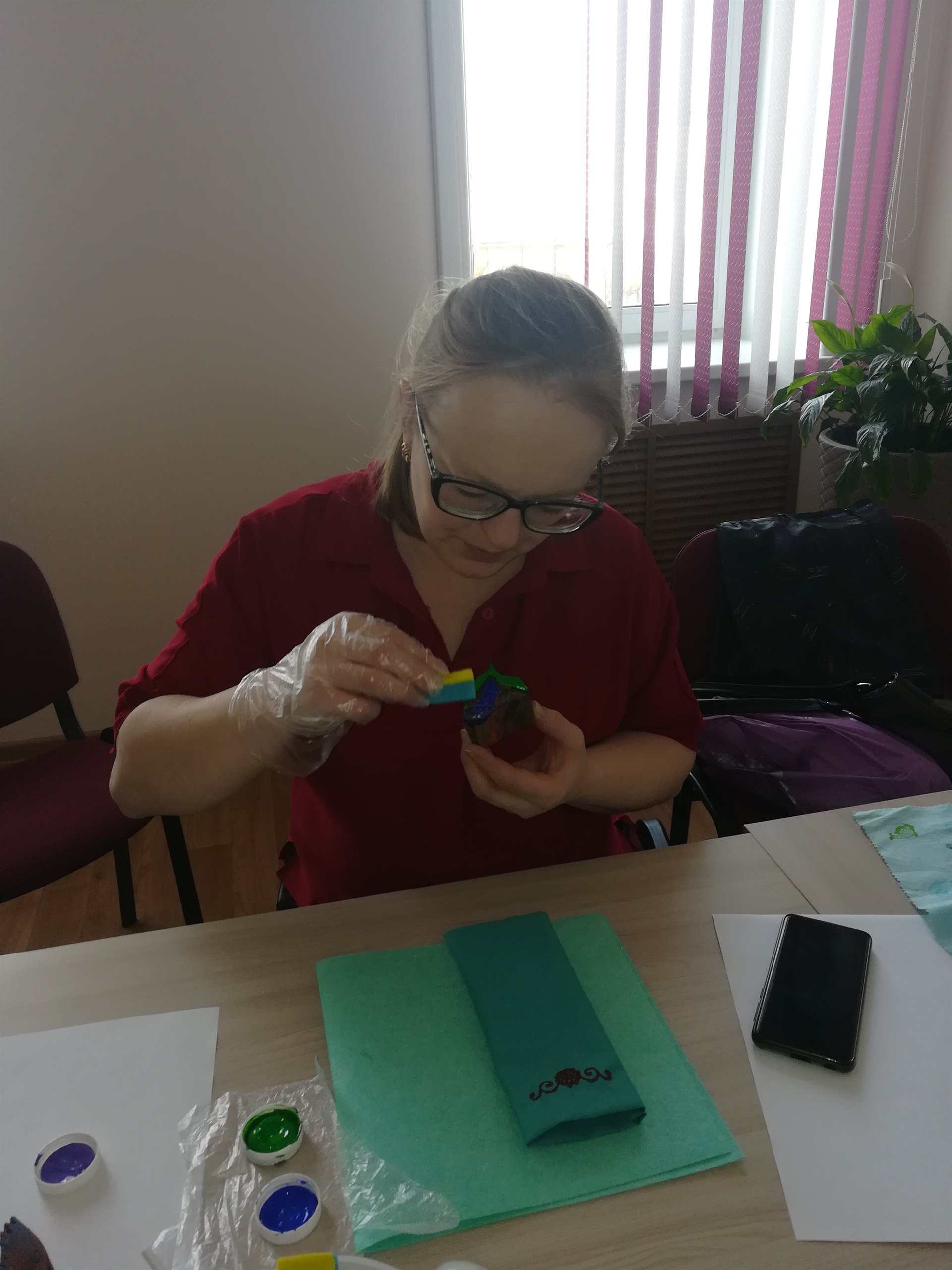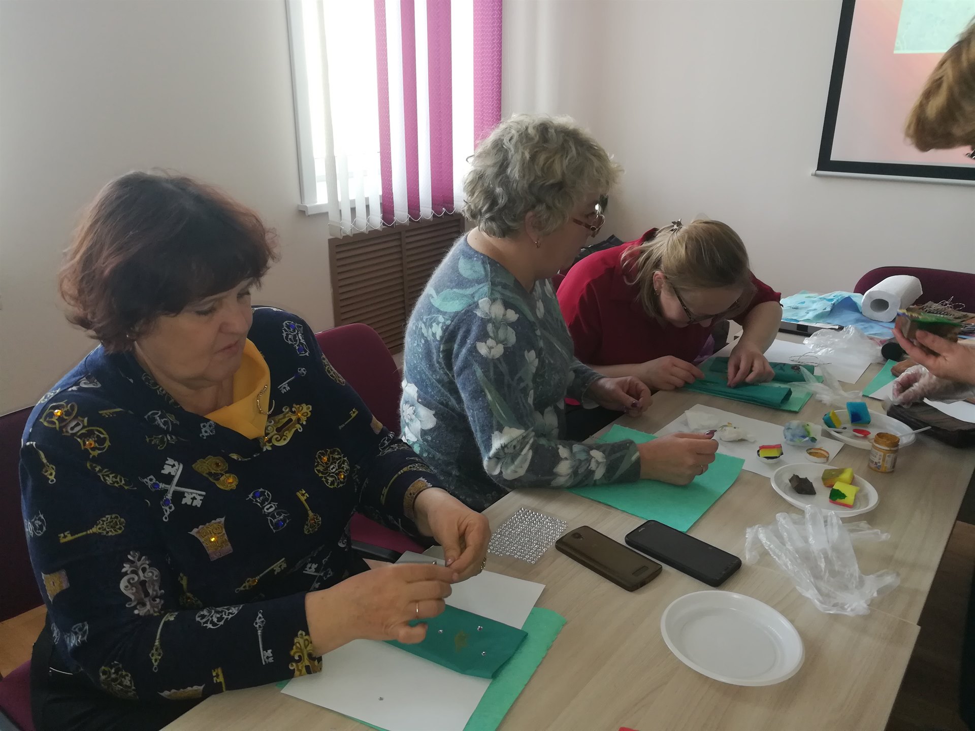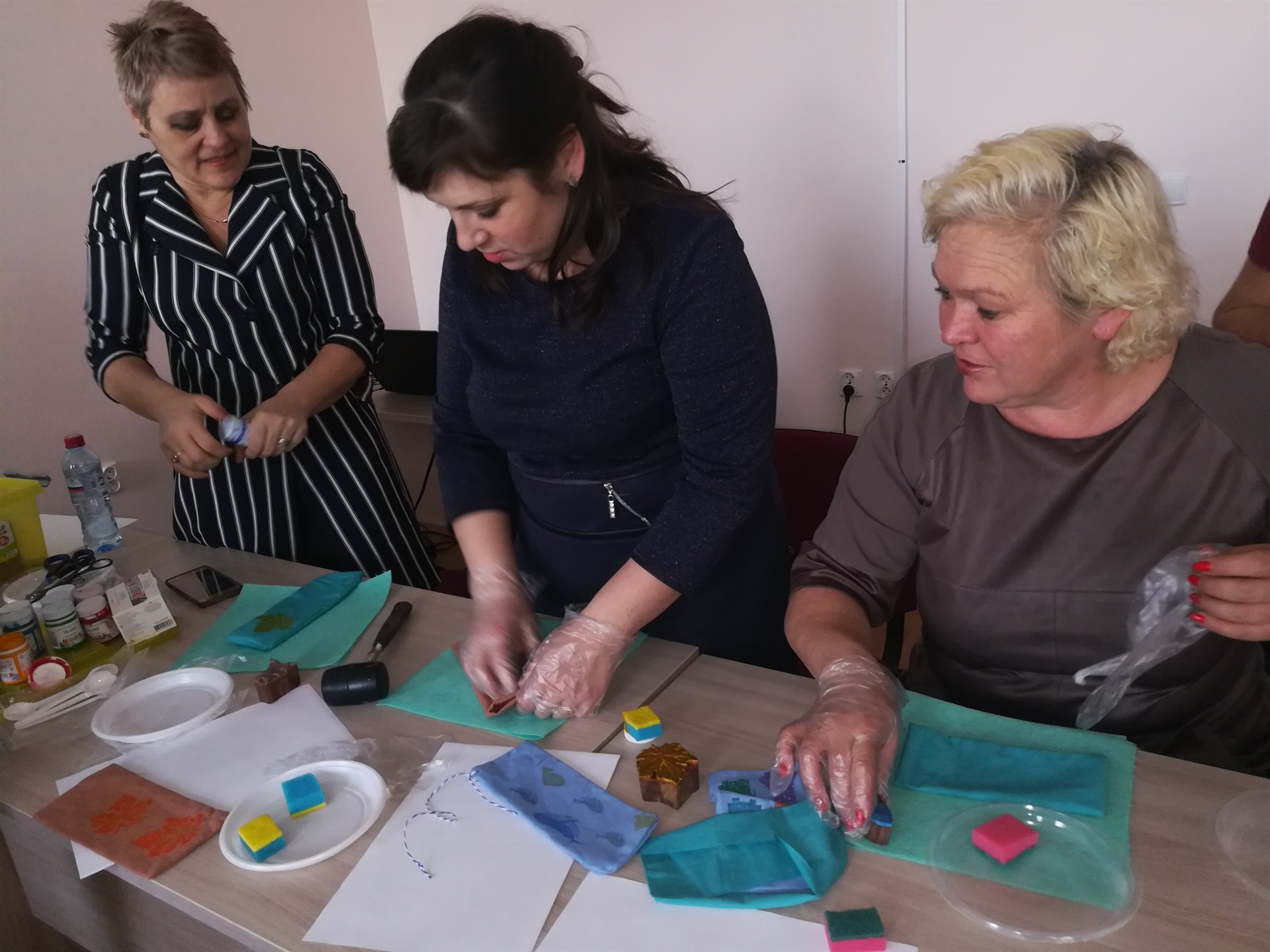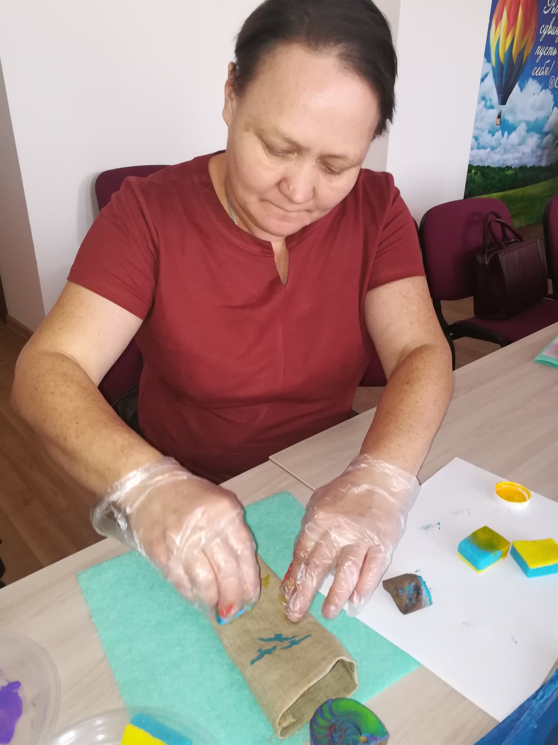 Во время мастер-класса Татьяна Валерьевна познакомила участников с техникой «набойка на ткани»; рассказала о происхождении данной техники, ее развитии и распространении; объяснила какие необходимы материалы и инструменты, где и как можно применять данную технику.