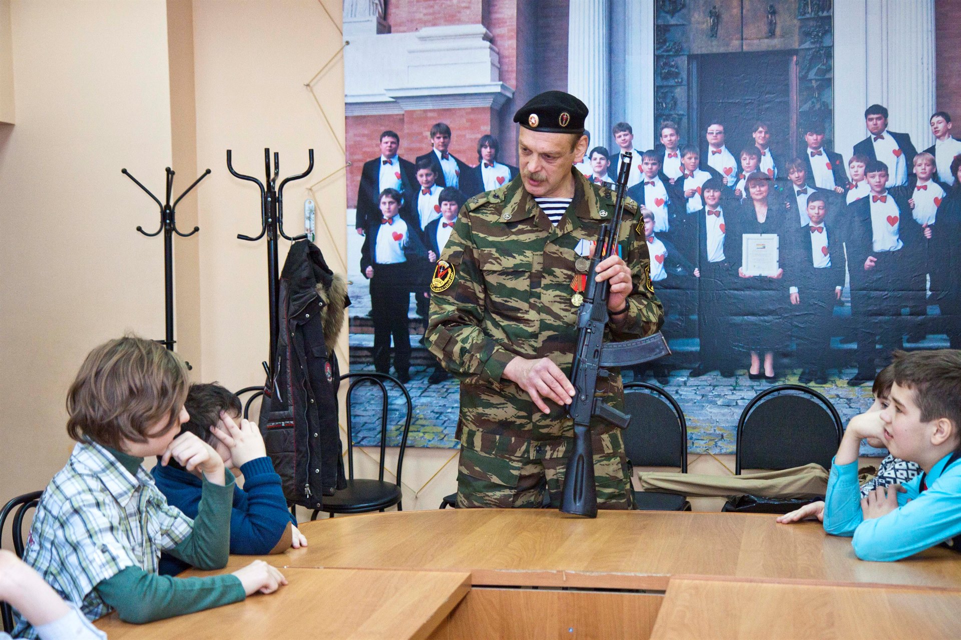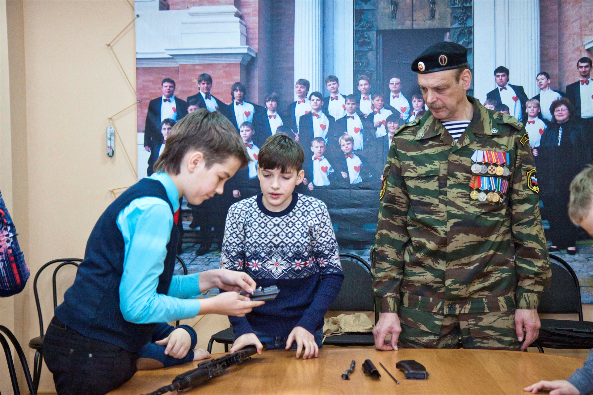 Игорь Юрьевич рассказал о боевых событиях прошлого России и наших дней, поделился с ребятами своим боевым опытом и провёл увлекательный мастер-класс по сборке и разборке автомата Калашникова.
