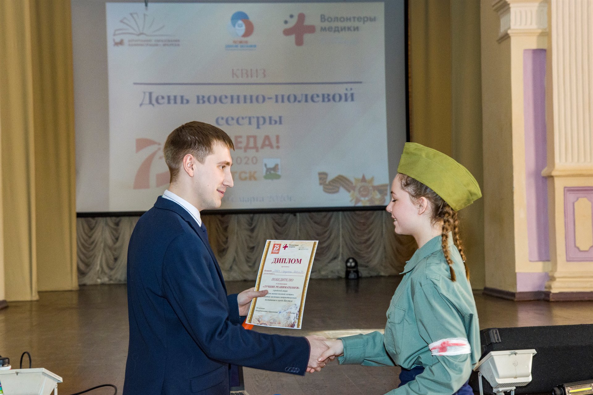 В целях расширения представления учащихся (девушек) о деятельности военно-полевых сестёр в годы Великой Отечественной войны, посредством вовлечения в практическую, социально-значимую работу, направленную на оказание первой доврачебной помощи, департаментом образования, городским школьным парламентом, координационным центром Российского движения школьников в городе Иркутске, совместно со Всероссийским общественным движением «Волонтеры-медики» 3 и 4 марта 2020г. было проведено городское мероприятие «День военно-полевой сестры» для девушек – учащихся 8-11 классов образовательных организаций г. Иркутска.