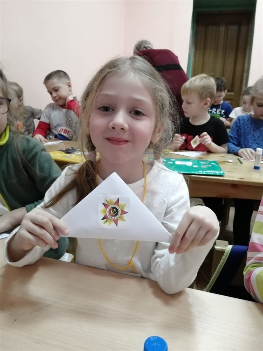 Бондаренко Анастасия Владимировна, педагог дополнительного образования, совместно с руководителем клуба «Зеленая лампа» Тростиной Ниной Валентиновной познакомили детей с художественными произведениями военной тематики, рассказали о полевой почте во время войны. Дети узнали, как жили их сверстники в это тяжёлое время, как писали добрые письма домой своим родным и близким и с нетерпением ждали ответной весточки. Затем дети написали своё письмо на фронт, сложили его в форме треугольника и красочно оформили. А потом все вместе читали стихи и пели песни про подвиг героев Великой Отечественной войны!