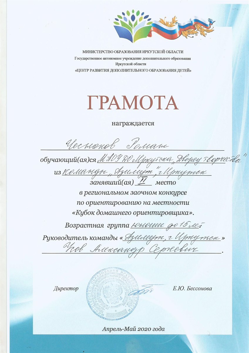 И самая свежая новость! Иркутский спортсмен Денис Филатов занял первое место на соревнованиях по русским шашкам памяти А. В. Скребнева. Его наставник — Дмитрий Константинович Никифоров, педагог Дворца творчества. Турнир проходил в онлайн-формате.