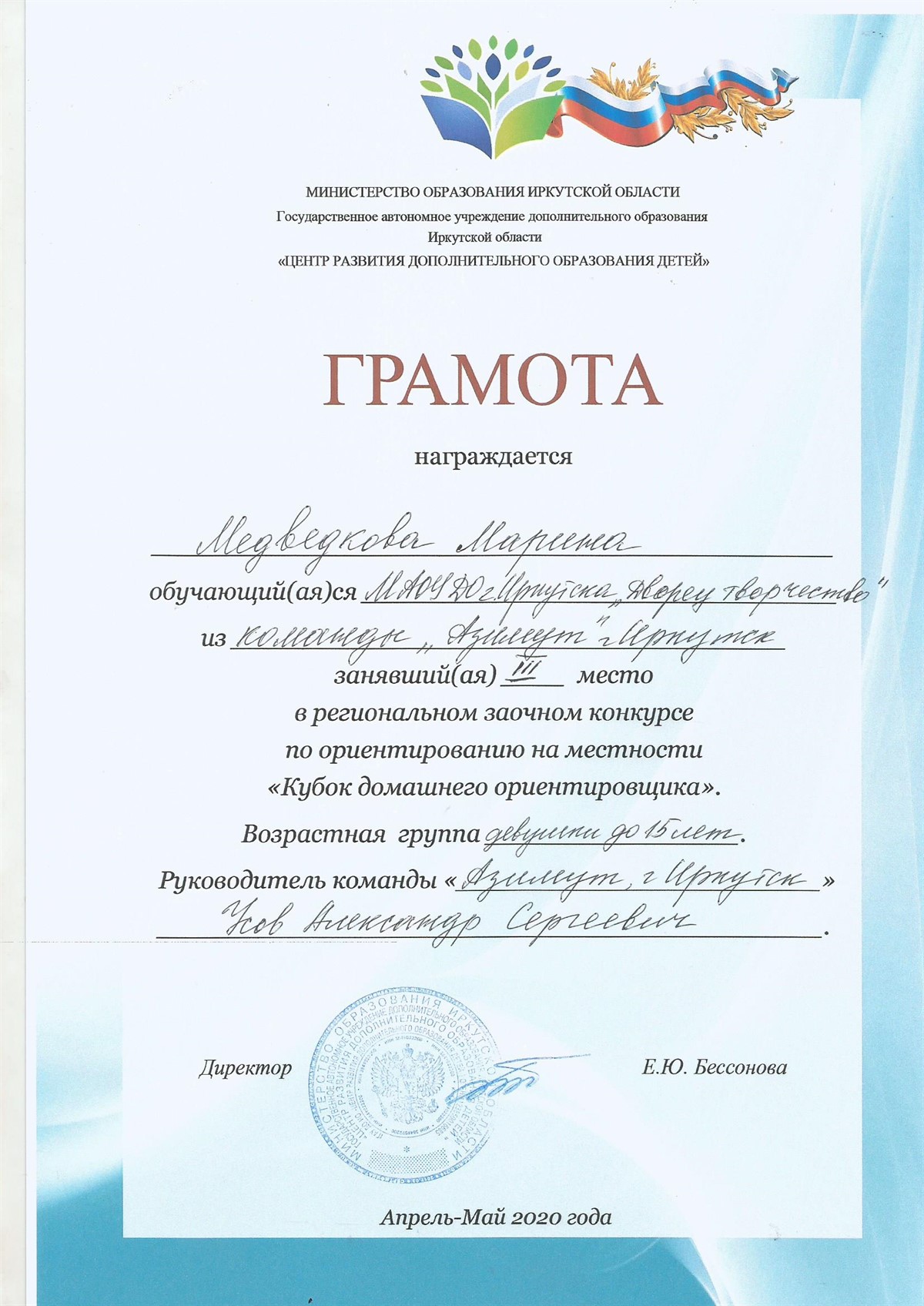 с 22 апреля по 1 мая юные ориентировщики Дворца Творчества, детского объединения "Азимут“, приняли участие в региональной интерактивной игре по ориентированию на диване "КУБОК ДОМАШНЕГО ОРИЕНТИРОВЩИКА".