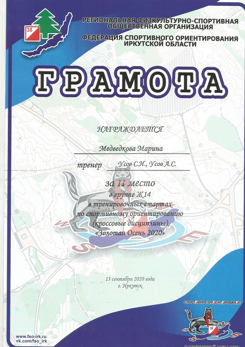 13 и 27 сентября состоялись открытые тренировочные старты «Золотая осень 2020». Обучающиеся клуба спортивного ориентирования «Азимут», под руководством педагога дополнительного образования «Дворца творчества» Усова Александра Сергеевича приняли участие в данных тренировочных стартах.
