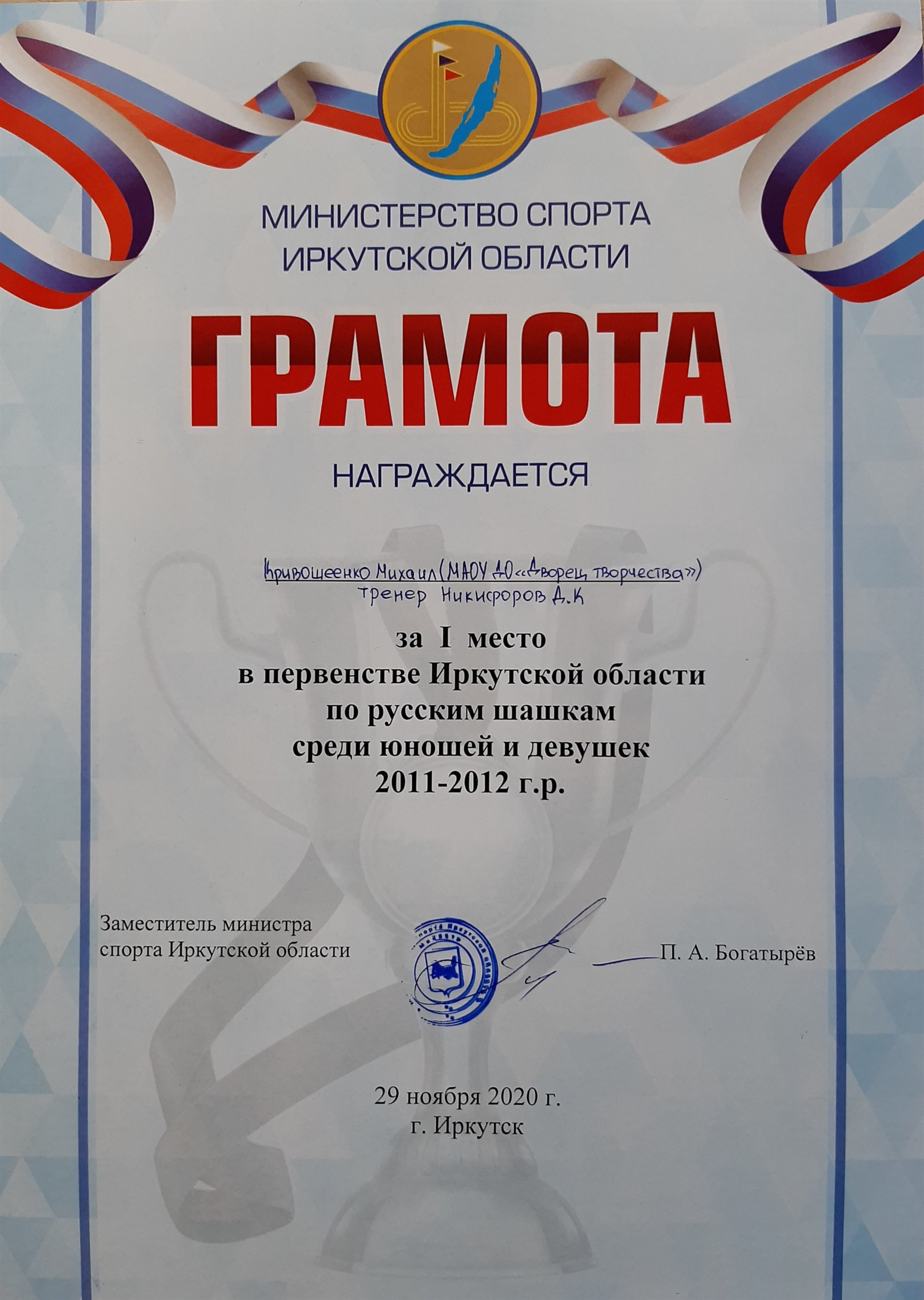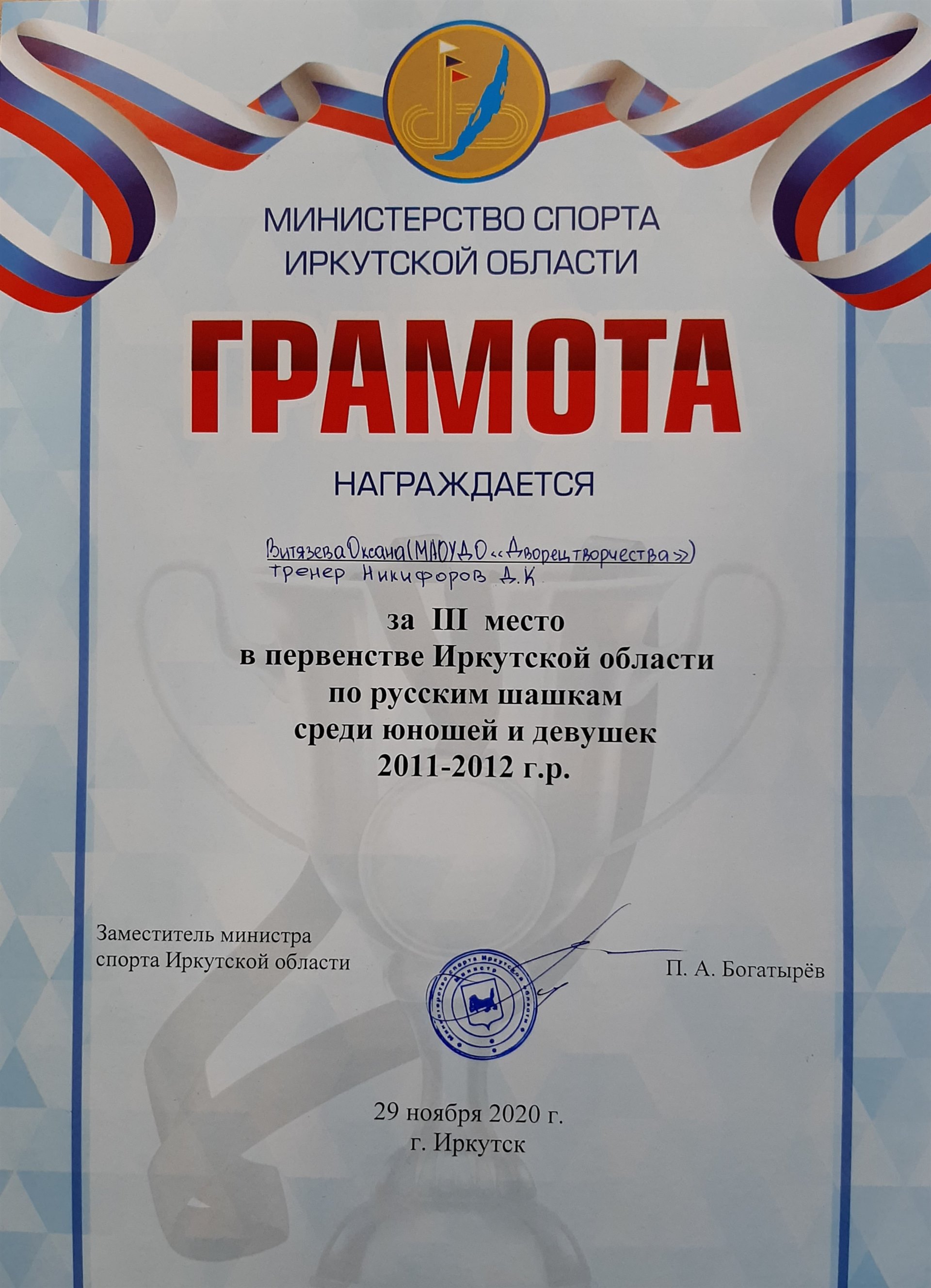 28-29 ноября 2020 года состоялось открытое первенство Иркутской области по русским шашкам среди юношей и девушек.