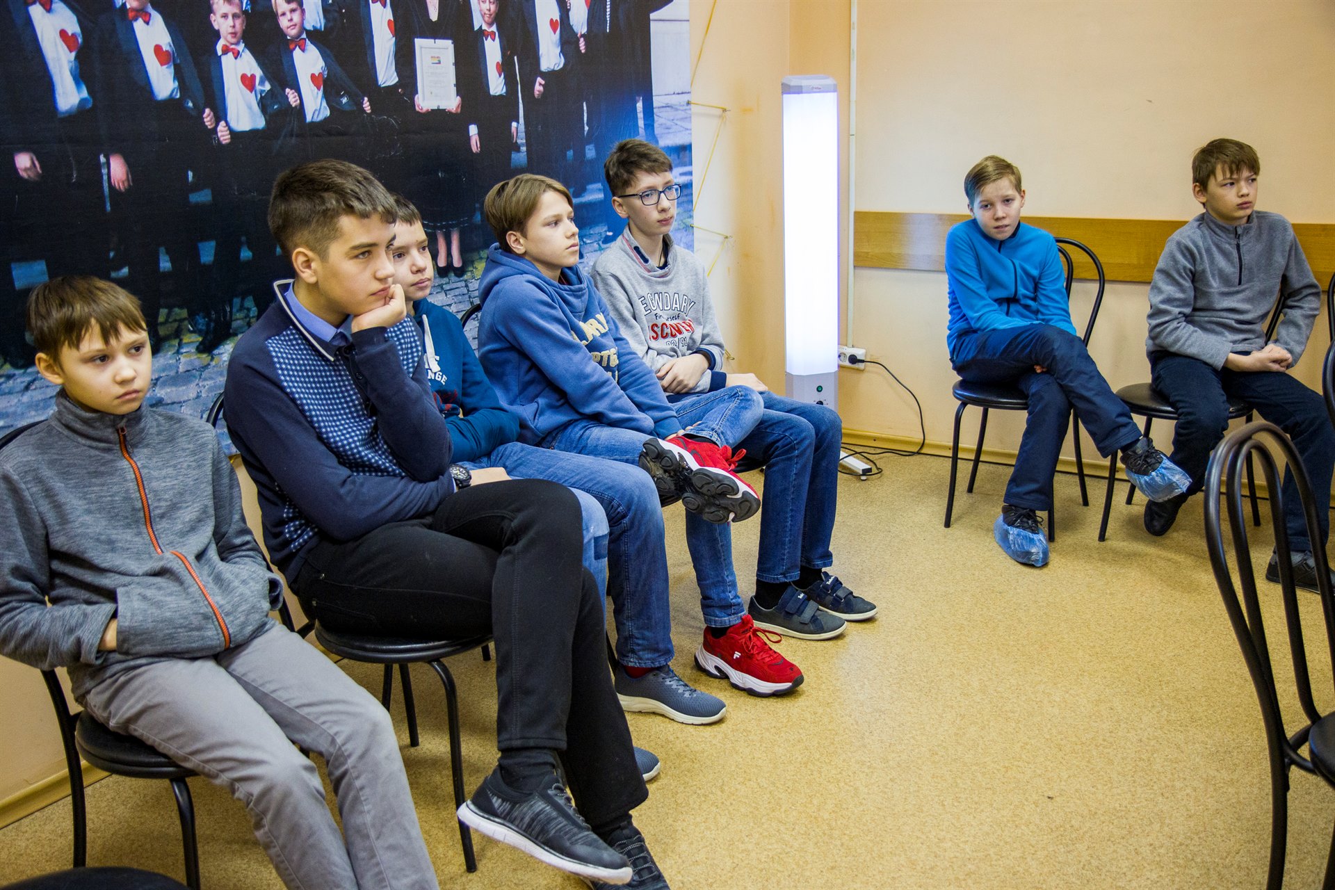 Юные хористы прослушали отрывок из симфонии №7 Д. Шостаковича и узнали историю создания музыкального произведения.