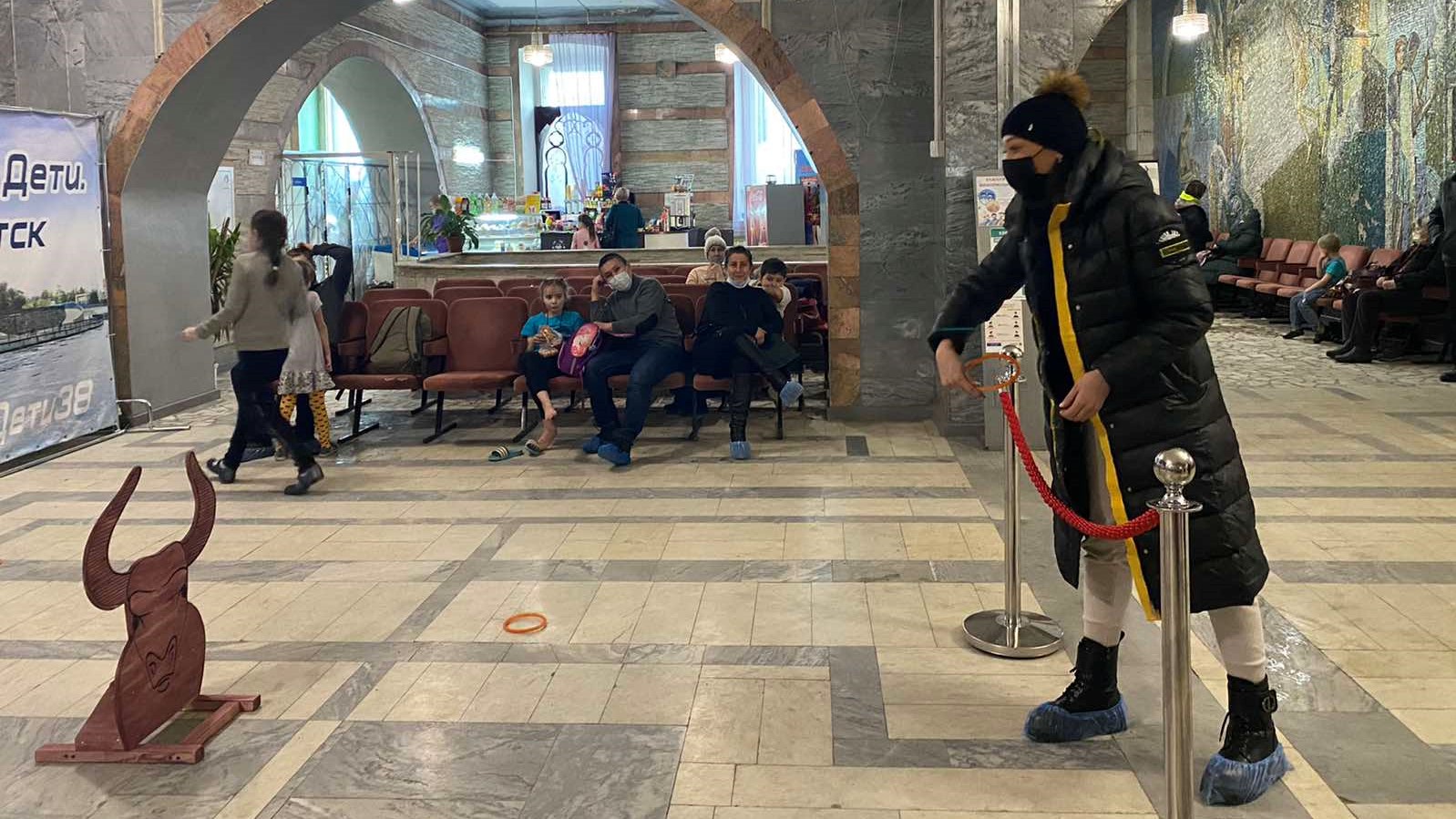 - забросить два кольца на рога быка.