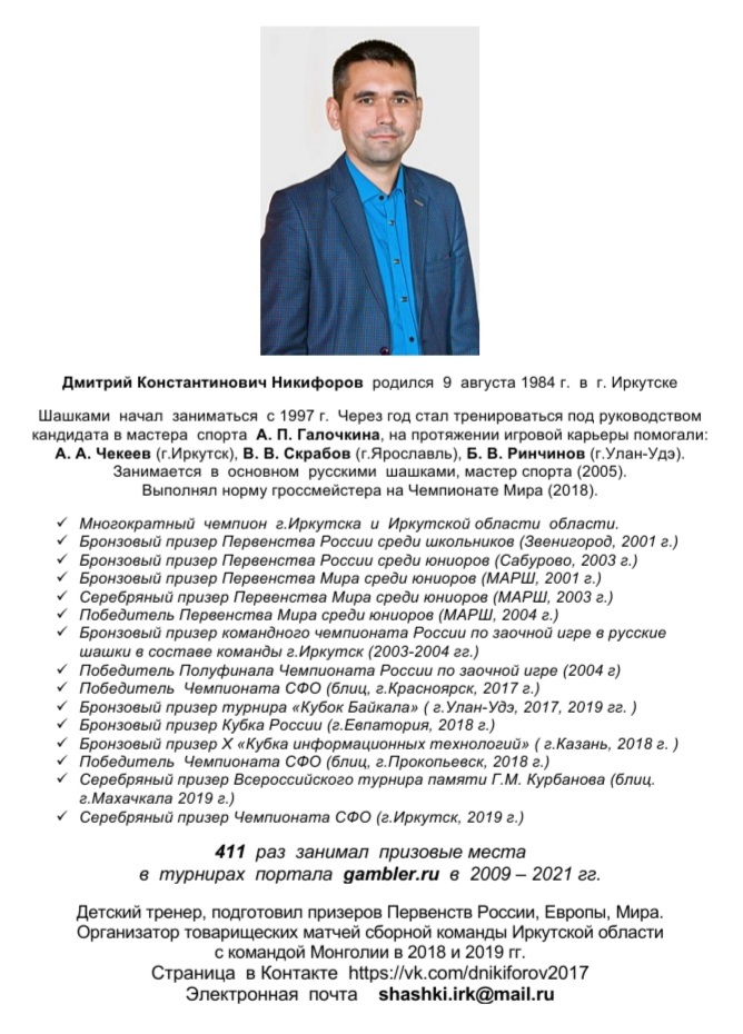 6 мая в г. Минске вышла книга по русским шашкам "ГАМБИТНЫЕ ПОЗИЦИИ", соавтором которой является педагог дополнительного образования Дворца творчества Дмитрий Константинович Никифоров.