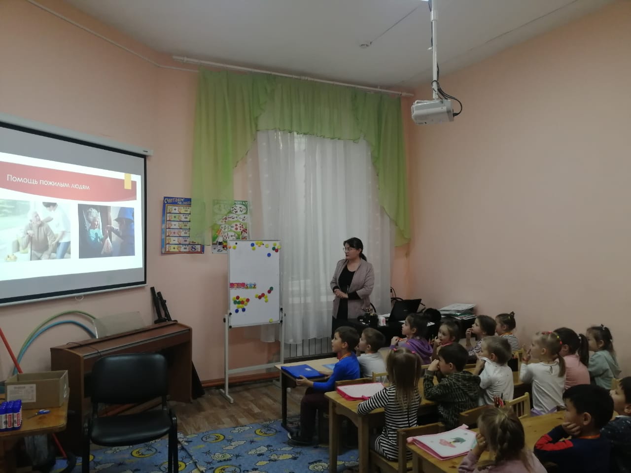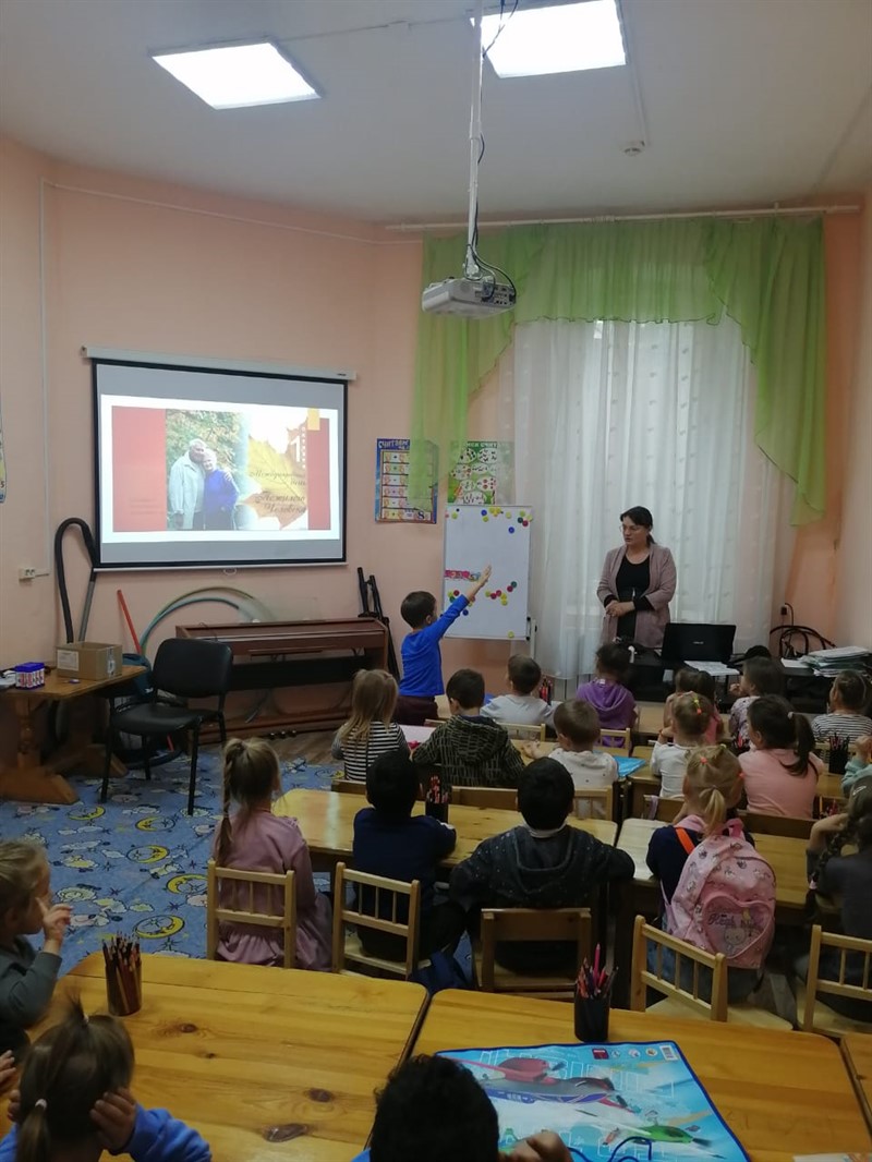 Дети узнали, что с недавних пор 1 октября во всем мире отмечается как День пожилых людей. Изначально его начали отмечать в Америке и Скандинавских странах Европы, а в конце 80-х годов он получил всемирное признание. К нам же он пришел лишь в 1992 году. С тех пор в осеннюю золотую пору ежегодно, мы поздравляем тех, кто все свои знания и силы посвятил Родине, кто отдал молодость и здоровье подрастающему поколению. Педагоги обратили особое внимание детей на вопрос, почему пожилые люди нуждаются в нашей помощи и поддержке!