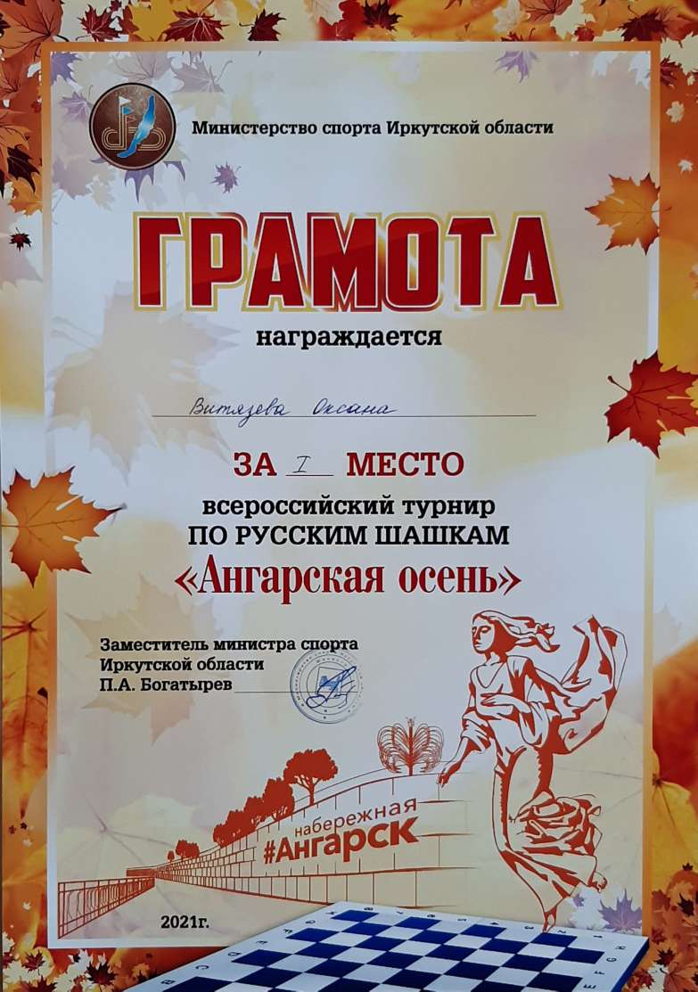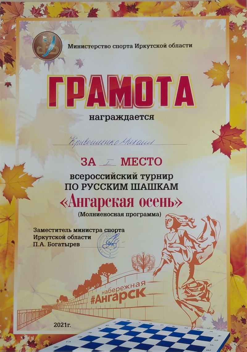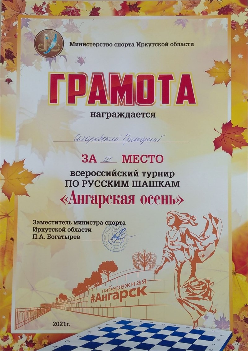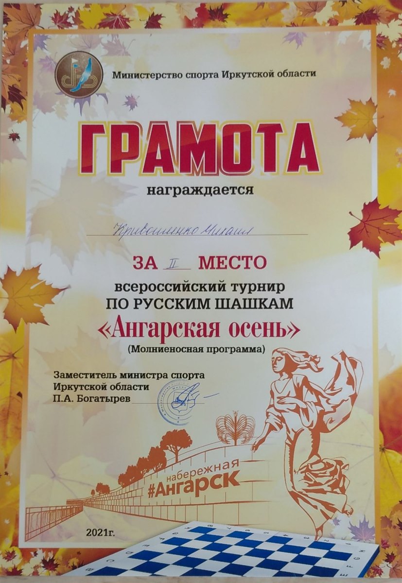 В г. Ангарске в период с 4 по 7 ноября состоялся I детский Всероссийский турнир "Ангарская осень". В соревновании приняли участие более 100 сильнейших юных шашистов Иркутской области, Красноярского края и Республики Бурятия.