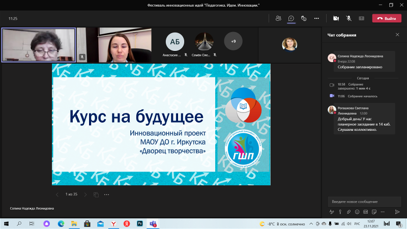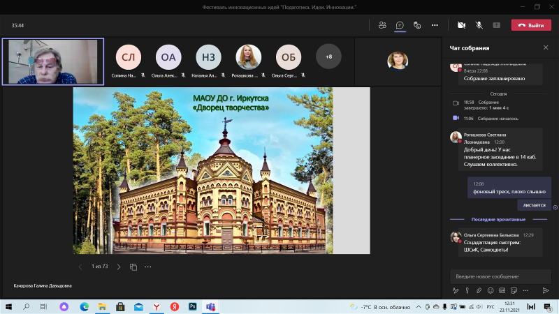23.11.2021 во Дворце творчества проводился фестиваль инновационных идей «Педагогика. Идеи. Инновации» с использованием платформы Teams.