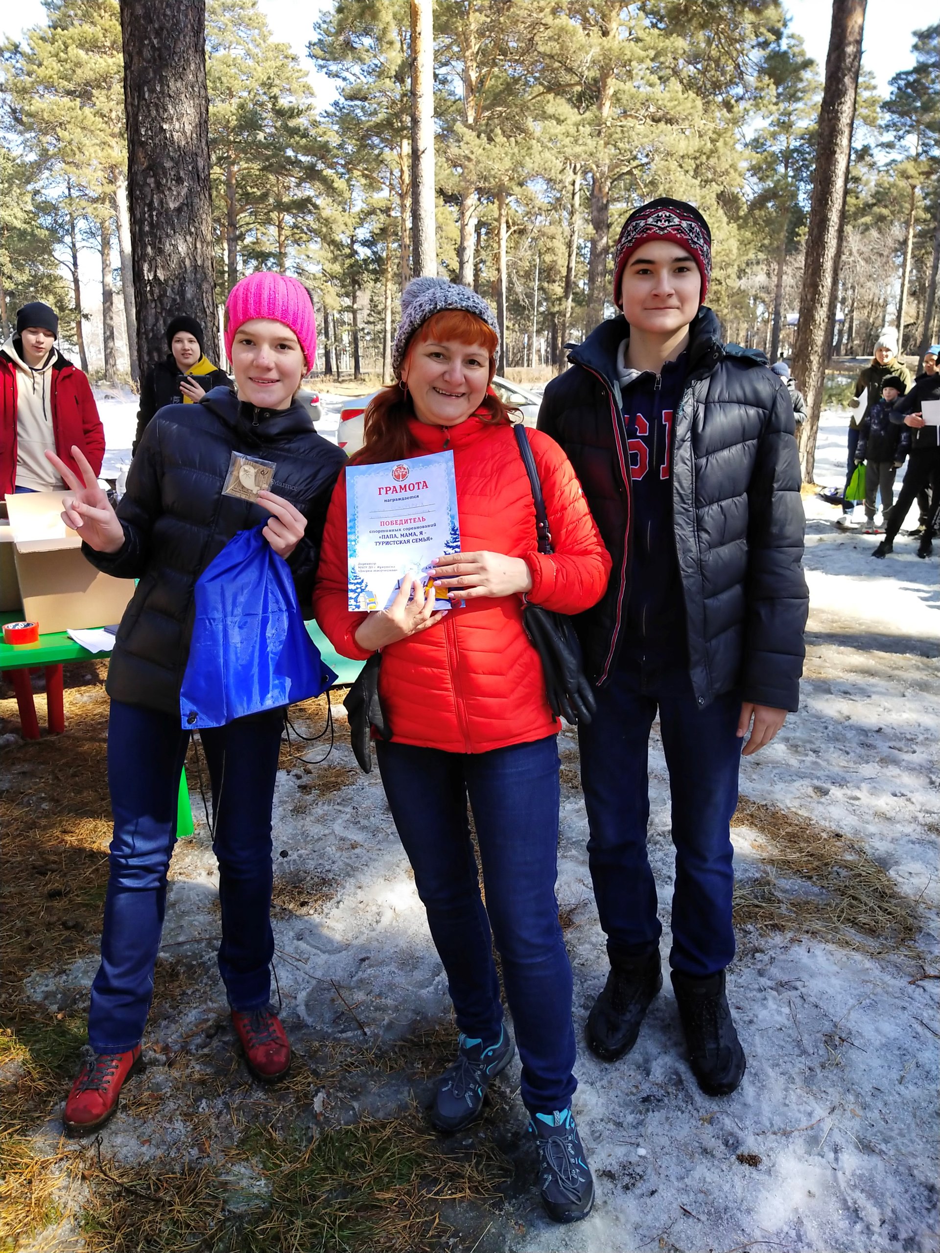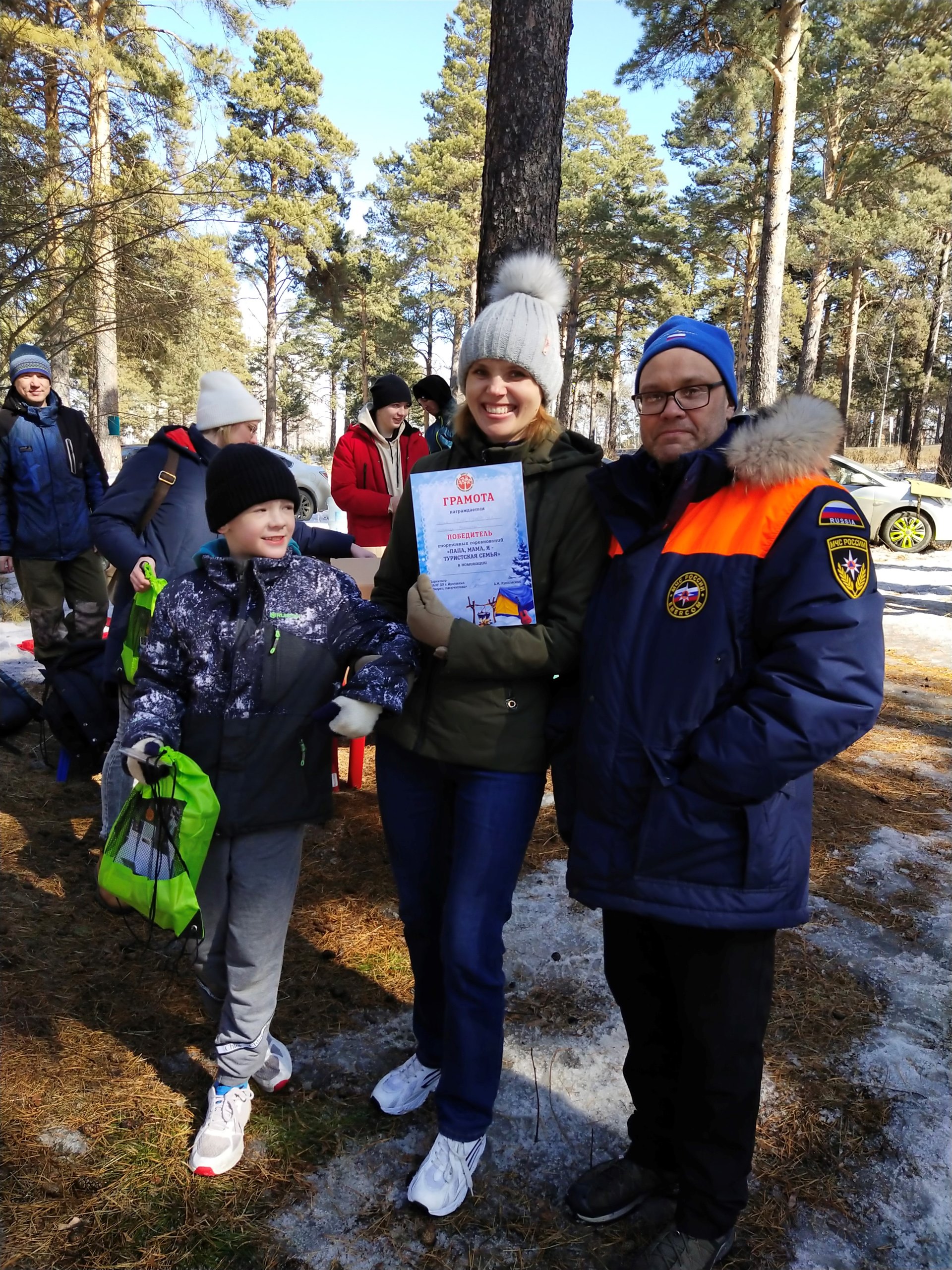 Участники эстафеты успели познакомиться с жемчужиной зеленого пояса Иркутска – живописным Кайским бором, подышать свежим сосновым воздухом, испытать свой командно-семейный дух, а в перерывах между соревнованиями попить горячего чая с конфетами и печеньем на природе.