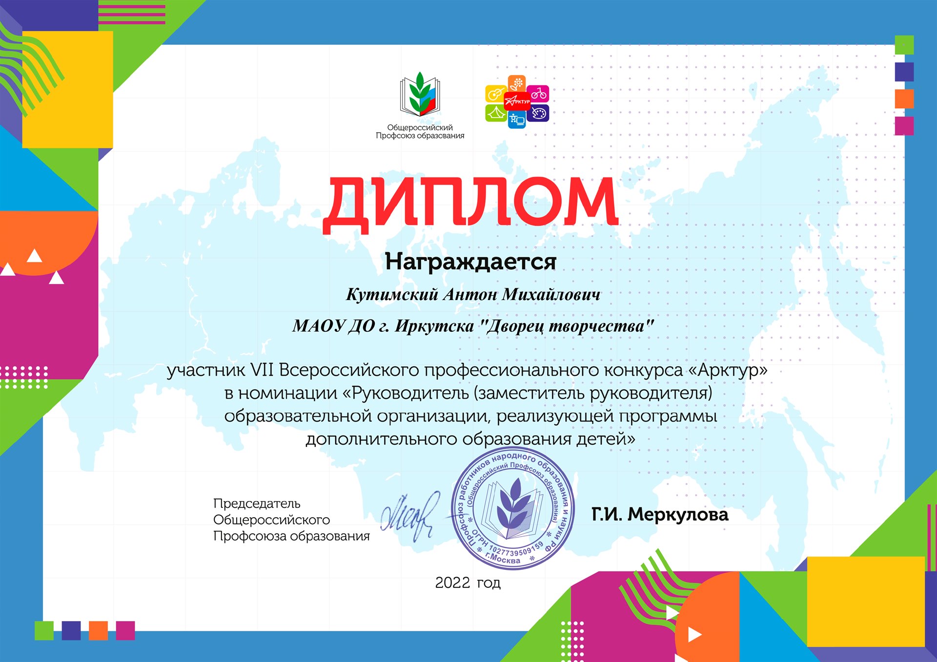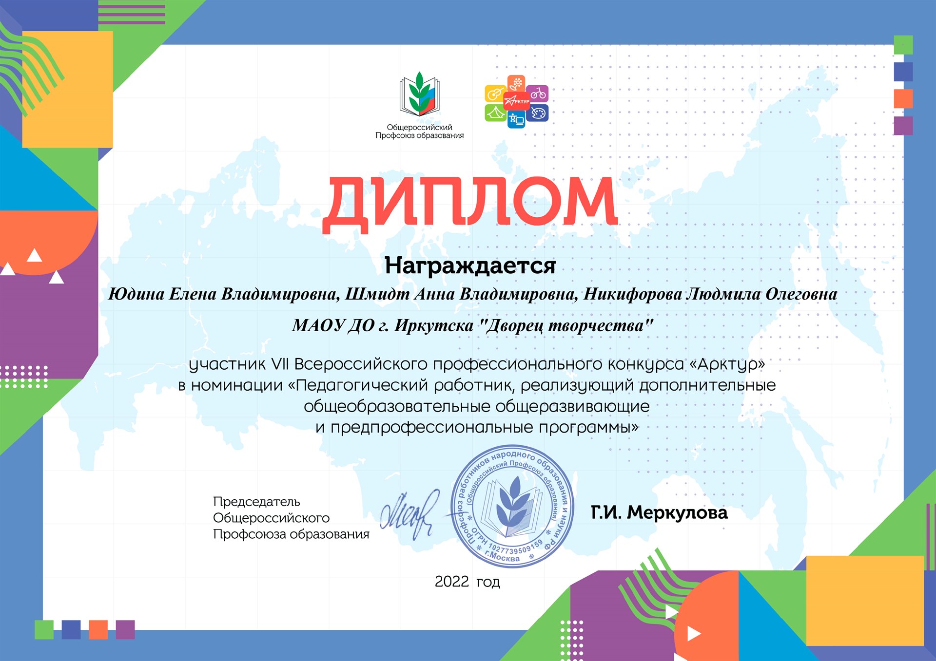 В настоящий момент с 11.04.2022 проходит заочный тур VII Всероссийского профессионального конкурса «Арктур». В конкурсе от Дворца творчества принимают участие: Антон Михайлович Кутимский, директор, в номинации «Руководитель (заместитель руководителя) образовательной организации, реализующей программы дополнительного образования детей», педагоги Юдина Елена Владимировна, Шмидт Анна Владимировна, Никифорова Людмила Олеговна в номинации «Педагогический работник, реализующий дополнительные общеобразовательные общеразвивающие и предпрофессиональные программы». У Антона Михайловича 27 соперников, а у Юдиной Е.В., Шмидт А.В., Никифоровой Д.В. 270 соперников. Борьба – нелёгкая, упорная.