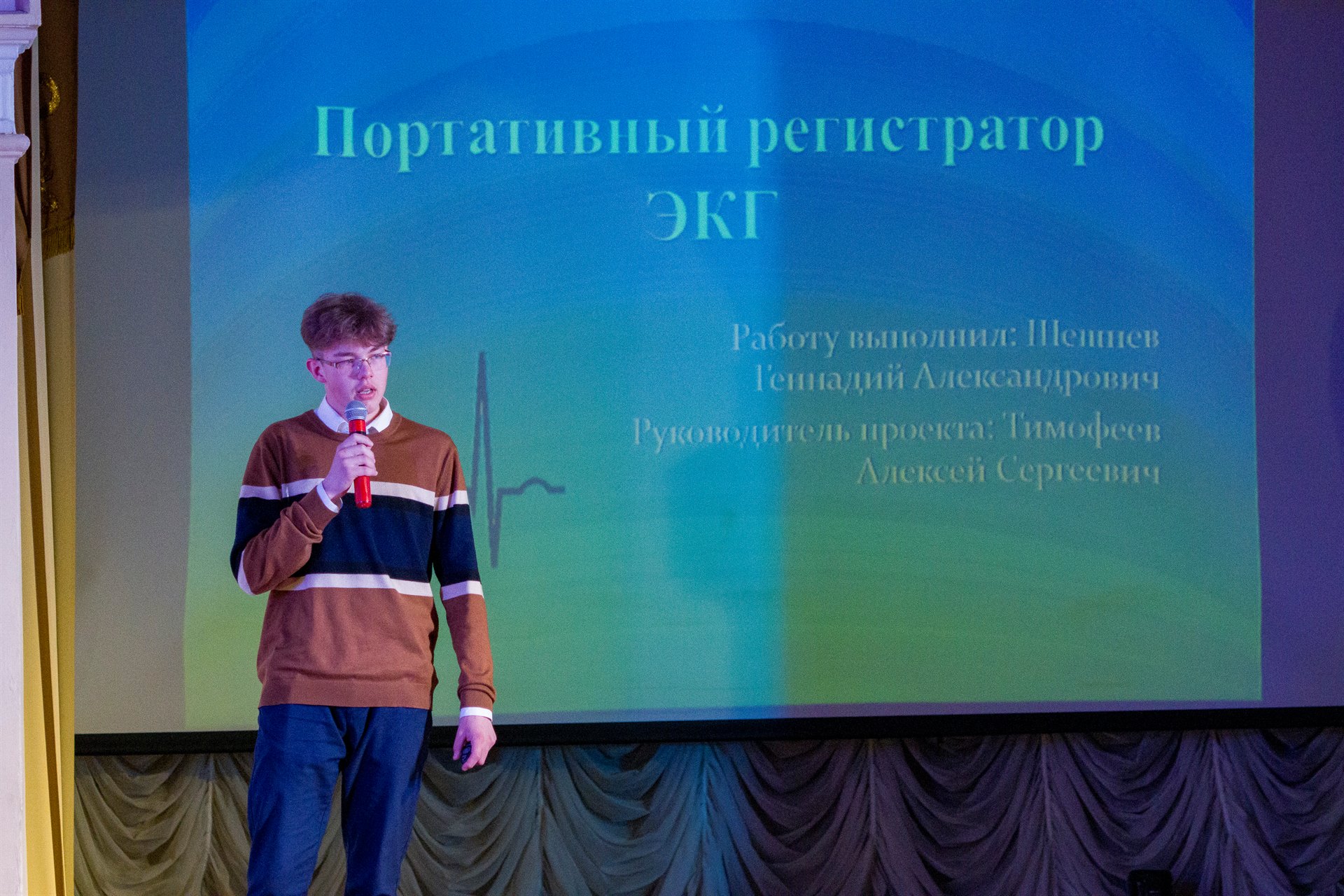 - проект «Портативный регистратор ЭКГ» (93 балла), автор – Шешнев Геннадий, руководитель – Тимофеев А.С.;