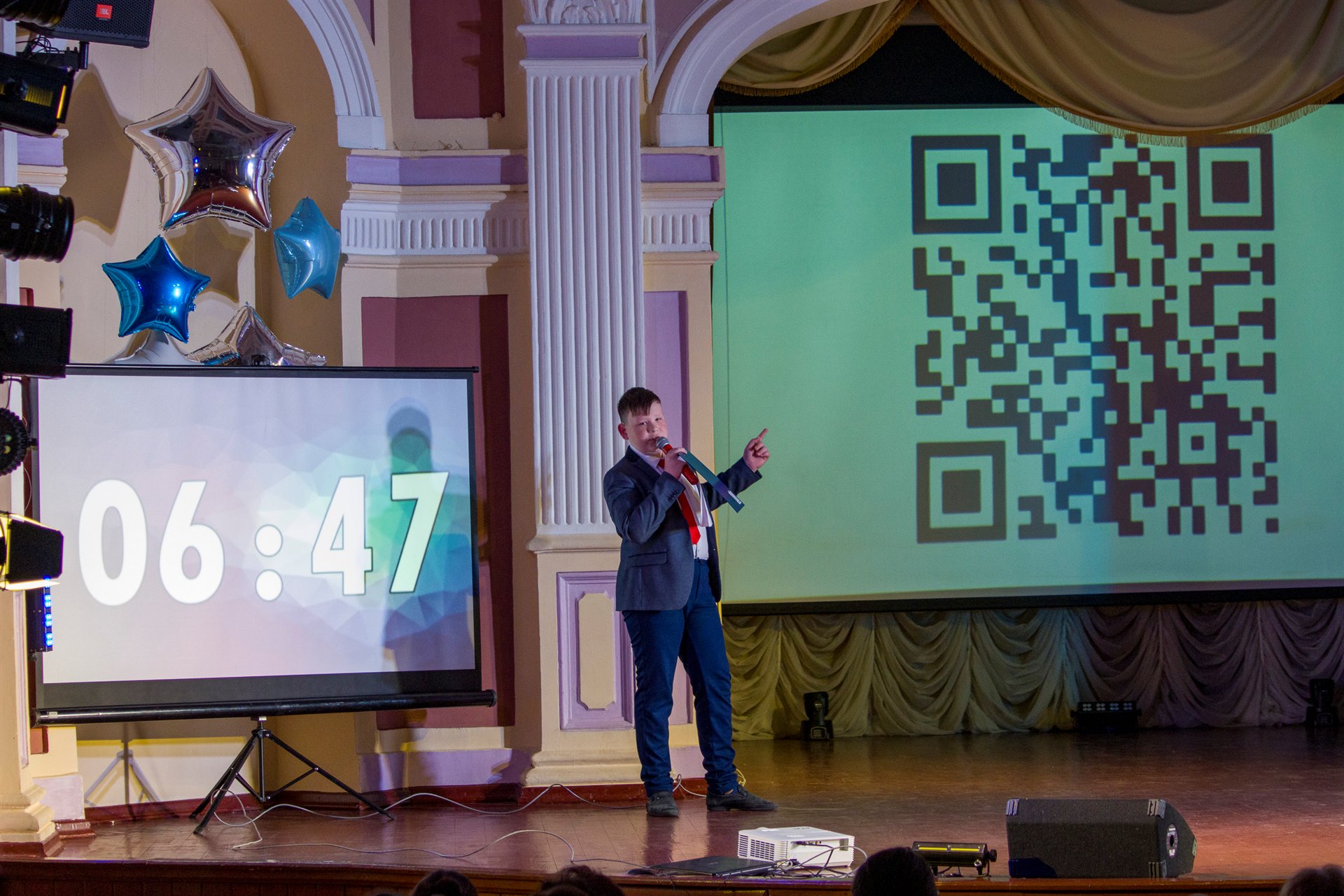 В ходе защиты проектов шло зрительское голосование по каждому проекту с использованием QR-кода. По результатам зрительского голосования приз зрительских симпатий вручен Красовскому Дмитрию за проект «Стихи А.С. Пушкина на английском языке».