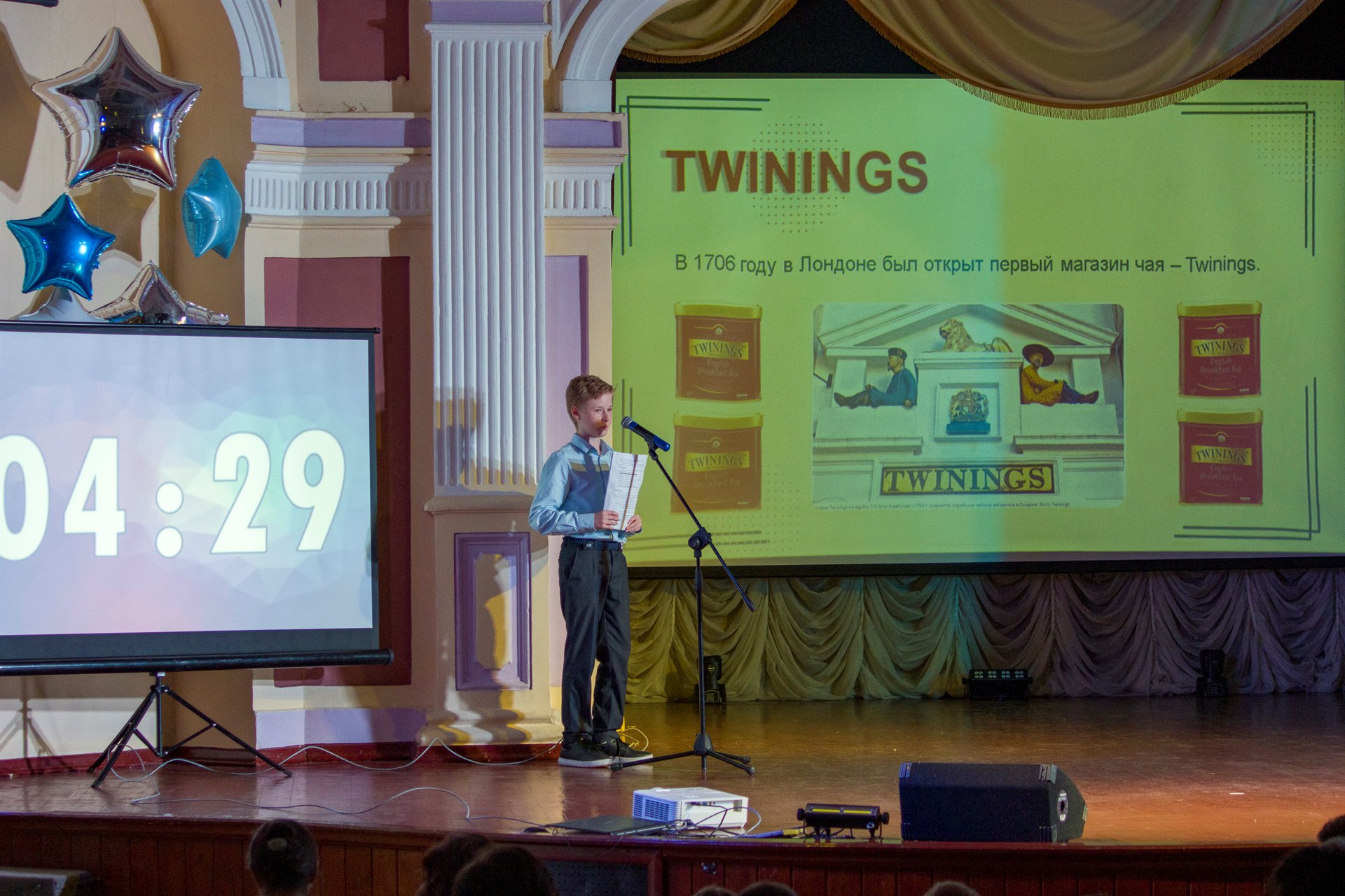 Учащиеся клуба «Полиглот» представили 10 проектов (руководители Плотникова Марина Валерьевна, Плотников Роман Александрович): традиции чаепития в Англии и России (Люцер Юлиан); церемония английского чаепития (Захарчук Максим, Кульдюков Иван); название месяцев и недель в русском и английском языке (Попов Мирон); мировой календарь (Захарчук Олеся); быстрое запоминании английских слов через просмотр мультфильмов (Плотников Елисей), название марок автомобилей (Маршал Владимир); пословицы и поговорки в английском и русском языках (Арефьев Александр); молодёжный сленг в английском языке (Алымбекова Саадат); Красовский Дмитрий стихи А.С. Пушкина представил на английском языке, а Колмаков Никон пояснил взаимосвязь Петра I и Англии.