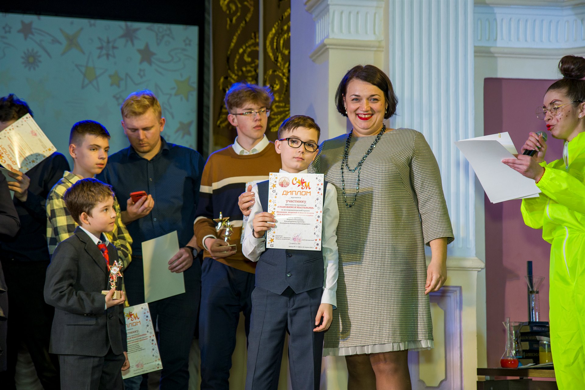 Все участники фестиваля проектов получили диплом участников, победителям были вручены дипломы победителей и кубок в форме звезды.