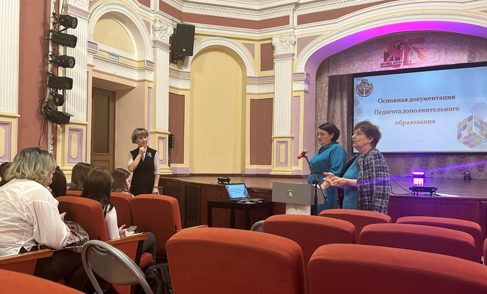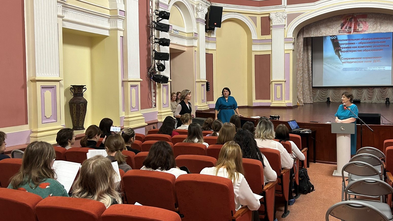 8 декабря 2022 во Дворце творчества прошел семинар-практикум для студентов выпускных групп отделения Художественного образования Иркутского регионального колледжа педагогического образования по теме: «Теоретические и прикладные аспекты работы педагога дополнительного образования». Данный семинар состоялся по инициативе Калашниковой Т.И, заведующей отделением художественного образования ГБПОУ ИО ИРКПО. На семинаре состоялся разговор о Дворце творчества как автономном образовательном учреждении, его отличии от бюджетных образовательных учреждений, а так же о структуре и органах управления. Основной вопрос, который обсудили на семинаре – это структура дополнительных общеразвивающих программ, особенности их составления и ошибки при составлении программ. Данные вопросы представила Татарникова Т.А., заместитель директора. Мукменова О.О., заместитель директора, поговорила со студентами о деятельности педагога дополнительного образования: основные направления деятельности, особенности комплектования групп. Студенты-выпускники во время семинара показали свою хорошую подготовку, заинтересованность в обсуждении вопросов. В завершении семинара Качурова Г.Д., методист, познакомила студентов с Дворцом творчества – провела экскурсию. Заместители директора Татарникова Т.А., Мукменова О.О. обсудили с Калашниковой Т.И., заведующей отделением художественного образования ГБПОУ ИО ИРКПО, вопрос о взаимодействии по организации практики студентов, участие методистов Дворца творчества в квалификационных экзаменах. Выпускникам ГБПОУ ИО ИРКПО заместителями директора было сделано предложение о дальнейшем сотрудничестве с сентября 2023 года, но уже в качестве молодых специалистов по реализации дополнительных общеразвивающих программ!