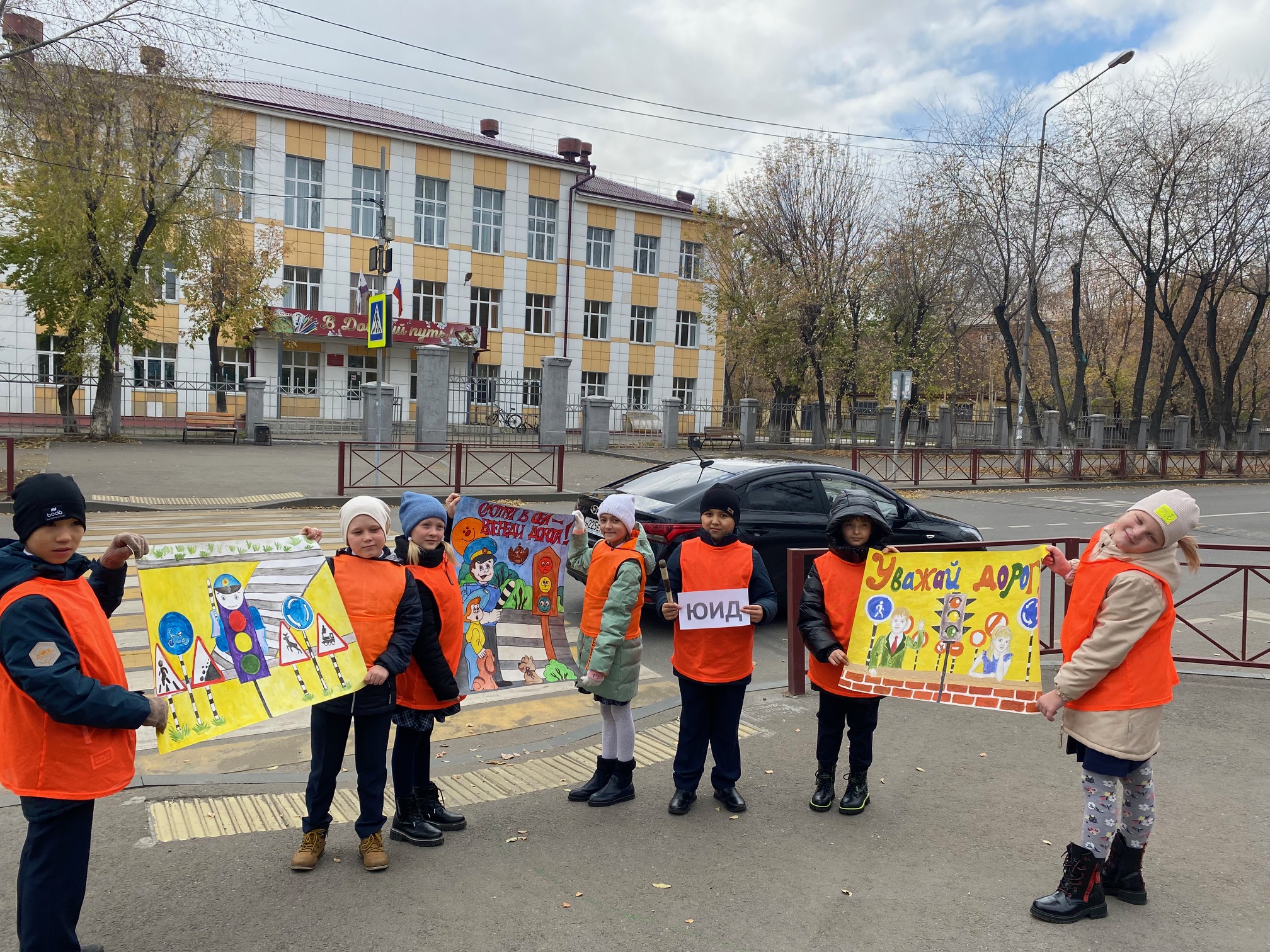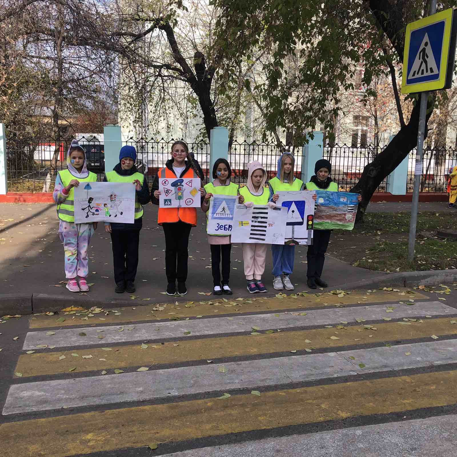 Участникам команд, совместно с педагогами, было необходимо изготовить агитационные плакаты. На близлежащем к образовательной организации пешеходном переходе, во время максимально активного движения транспортных средств и пешеходов, привлечь внимание всех участников дорожного движения рассказывая о правилах перехода через проезжую часть.