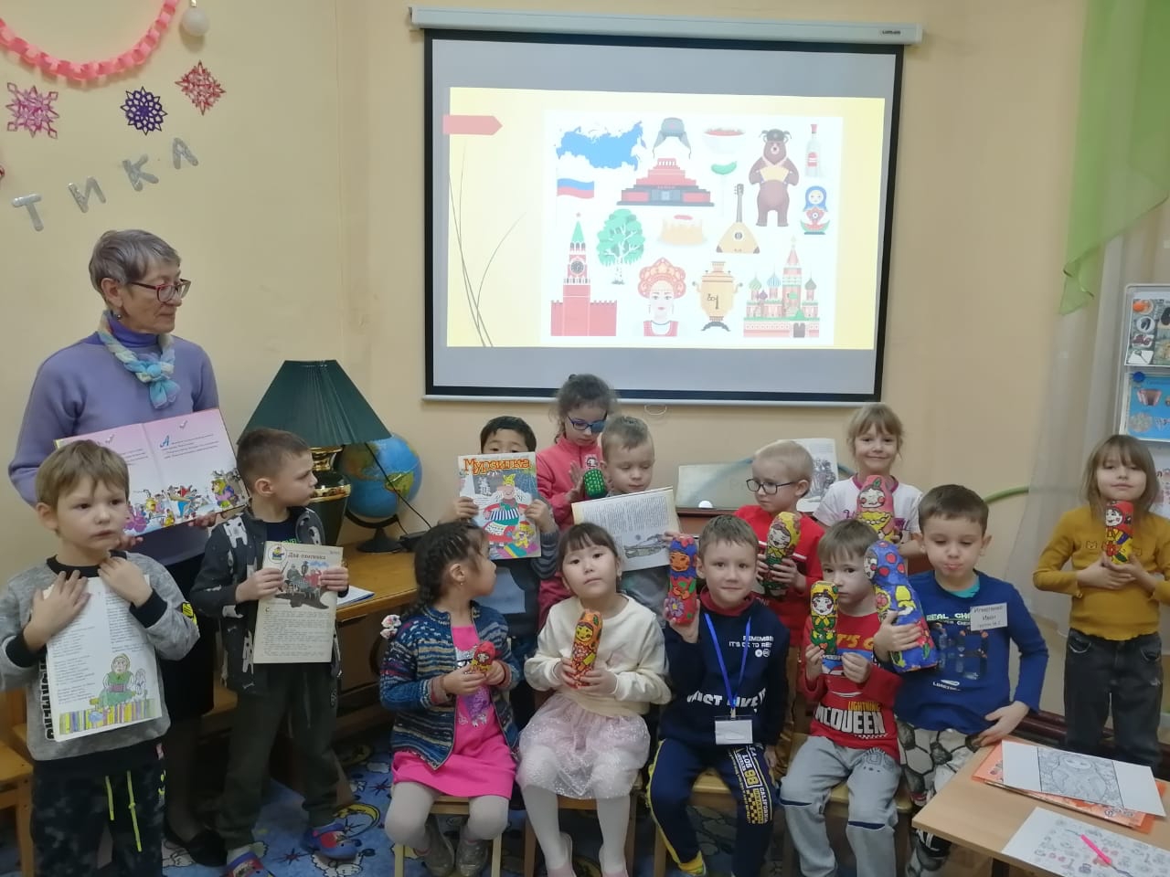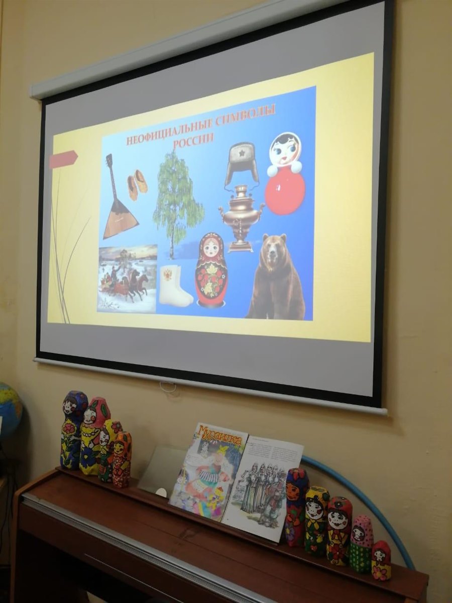 19 января 2023 года педагог Школы раннего развития Митюкова Анастасия Владимировна и руководитель клуба «Зелёная лампа» Тростина Нина Валентиновна провели воспитательное мероприятие «Неофициальные символы России – матрёшка, гармонь, самовар» для детей и родителей ШРР в рамках реализации инновационного проекта «Маленький Россиянин», где учащиеся знакомятся с неофициальными символами России: медведем, балалайкой, гармонью, матрёшкой, участвуют в интерактивной беседе, с удовольствием раскрашивают картину с изображением традиционных символов нашей Родины.