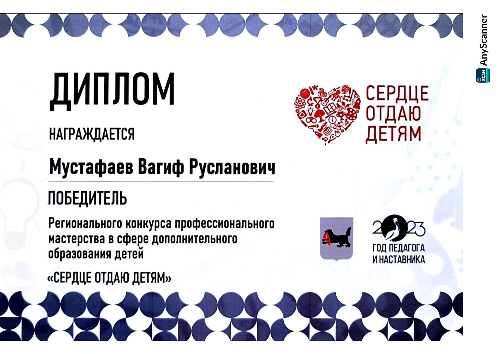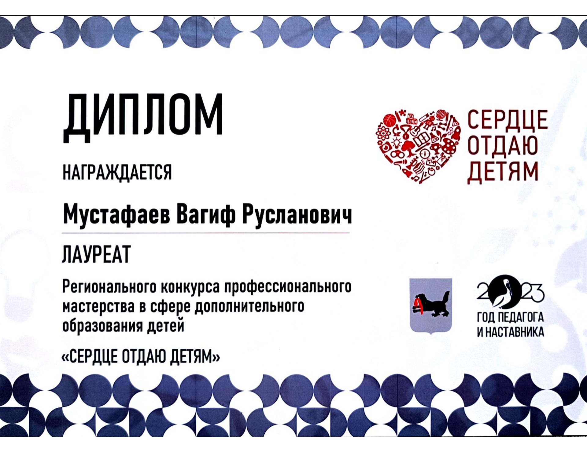 Вагиф Русланович, администрация, педагогический коллектив Дворца творчества поздравляет Вас с победой в профессиональном конкурсе «Сердце отдаю детям».